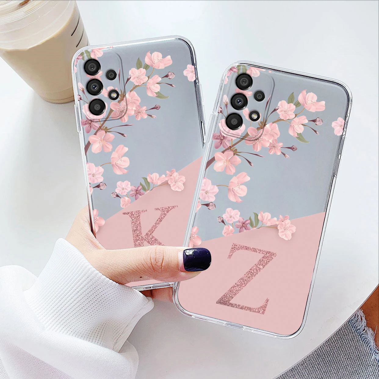 Comprar Funda trasera para Samsung A53 A33, carcasa suave y delgada de lujo con letras de A-Z, a prueba de golpes, bolsas transparentes, parachoques para Samsung Galaxy A73 5G