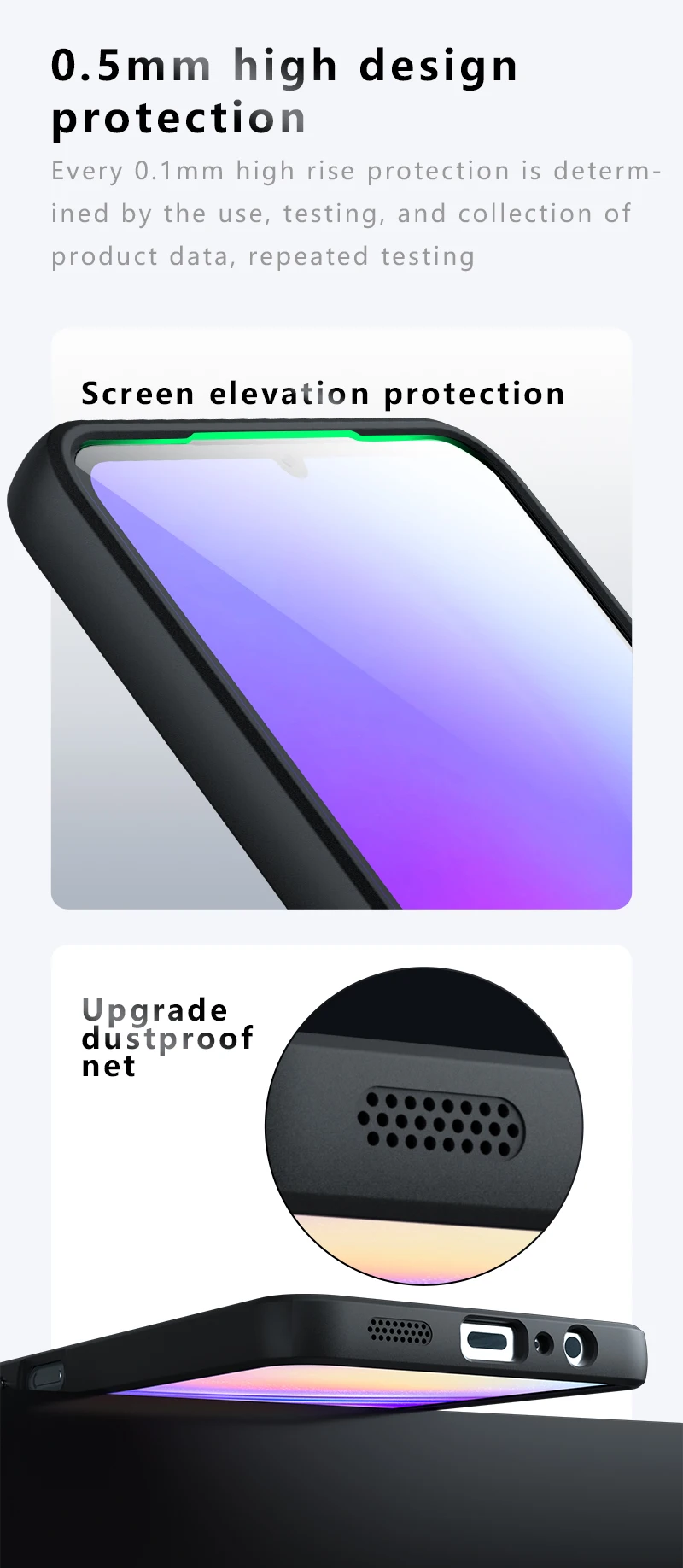 [Función]: Protección trasera A prueba de golpes + Resistente a rayones + Antideslizante
