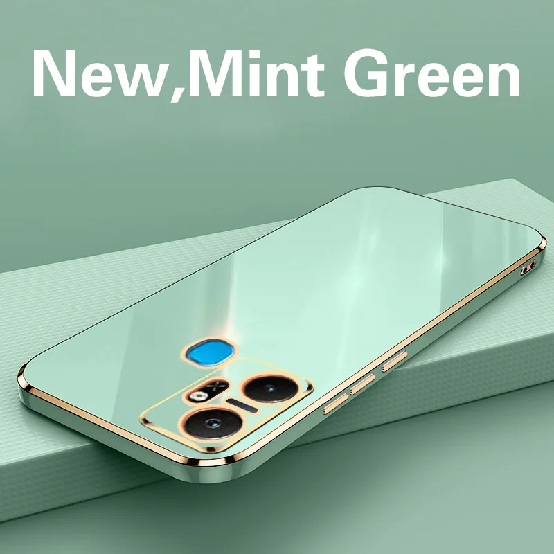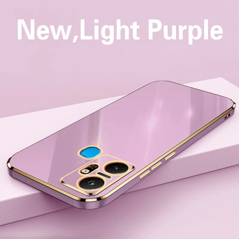 Comprar Funda trasera de silicona a prueba de golpes para Infinix Smart 6 Plus, carcasa de lujo con revestimiento cuadrado, X6823C