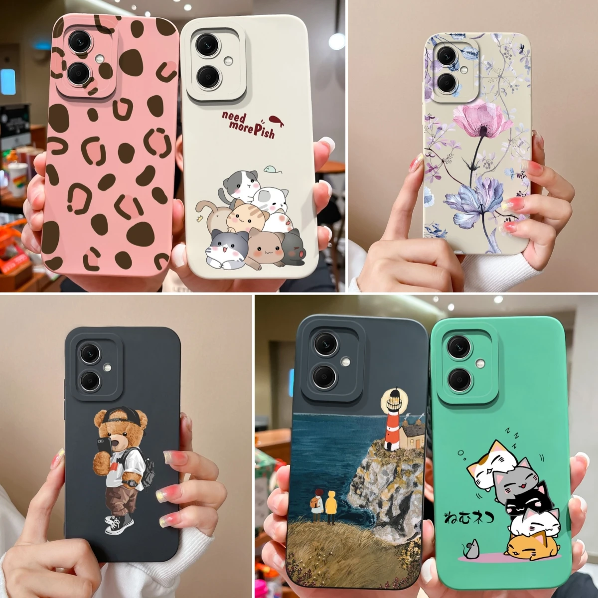 Comprar Funda trasera de silicona líquida para teléfono móvil, carcasa suave de cobertura completa para Poco M6 Pro 4G 5G, con diseño de oso gato, para Xiaomi Poco M6Pro
