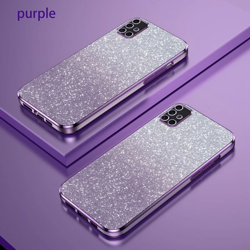 Comprar Funda trasera de silicona para Samsung A51 4G Galaxy A71 4G, Funda de teléfono Galaxy A70 de lujo, gradiente, chapado en purpurina