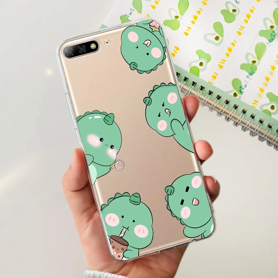 Comprar Funda trasera de silicona suave para Huawei Y7 Pro 2018, carcasa transparente de TPU con Gato de dinosaurio bonito para Huawei Y7 Prime 2018 Y7Pro 2018