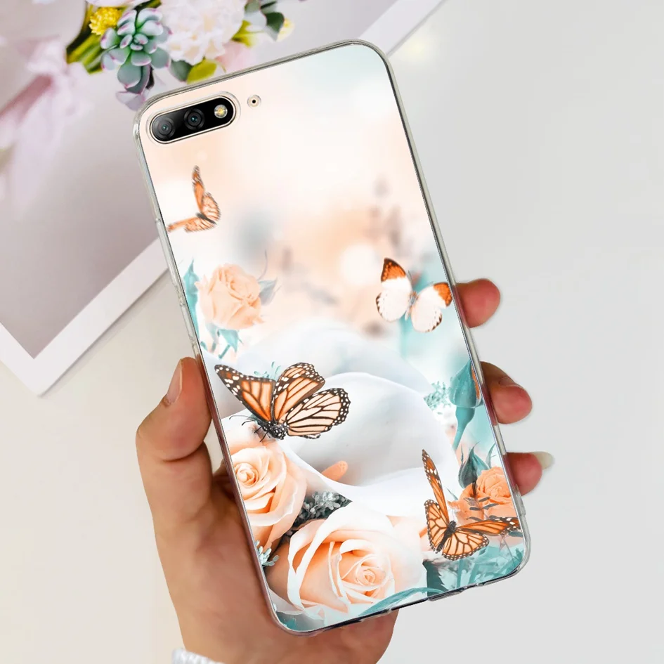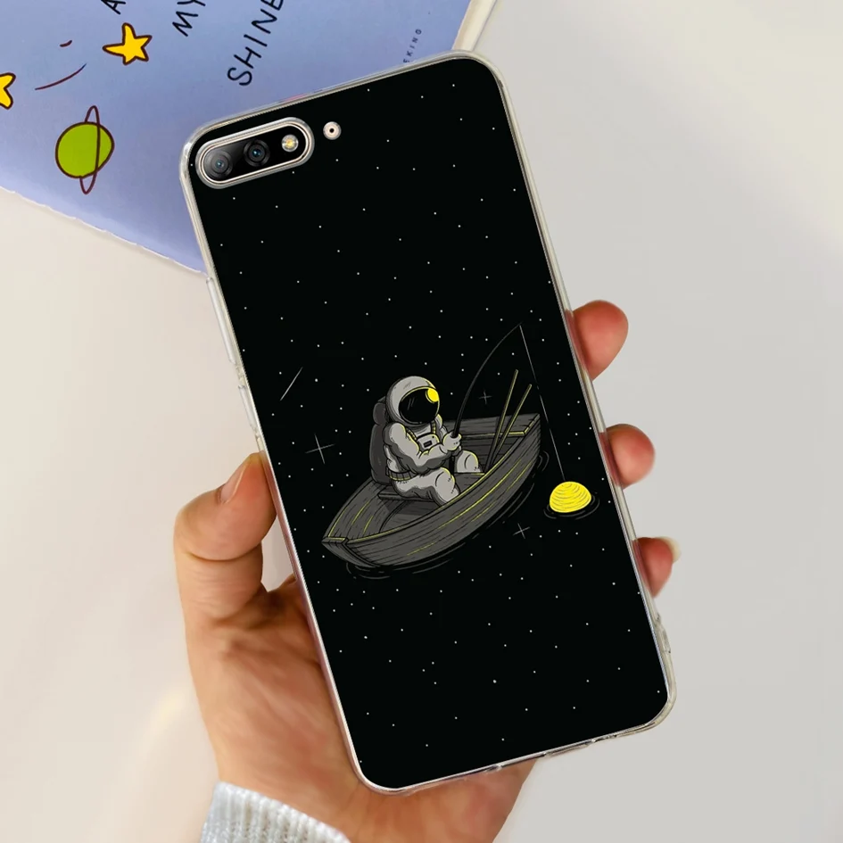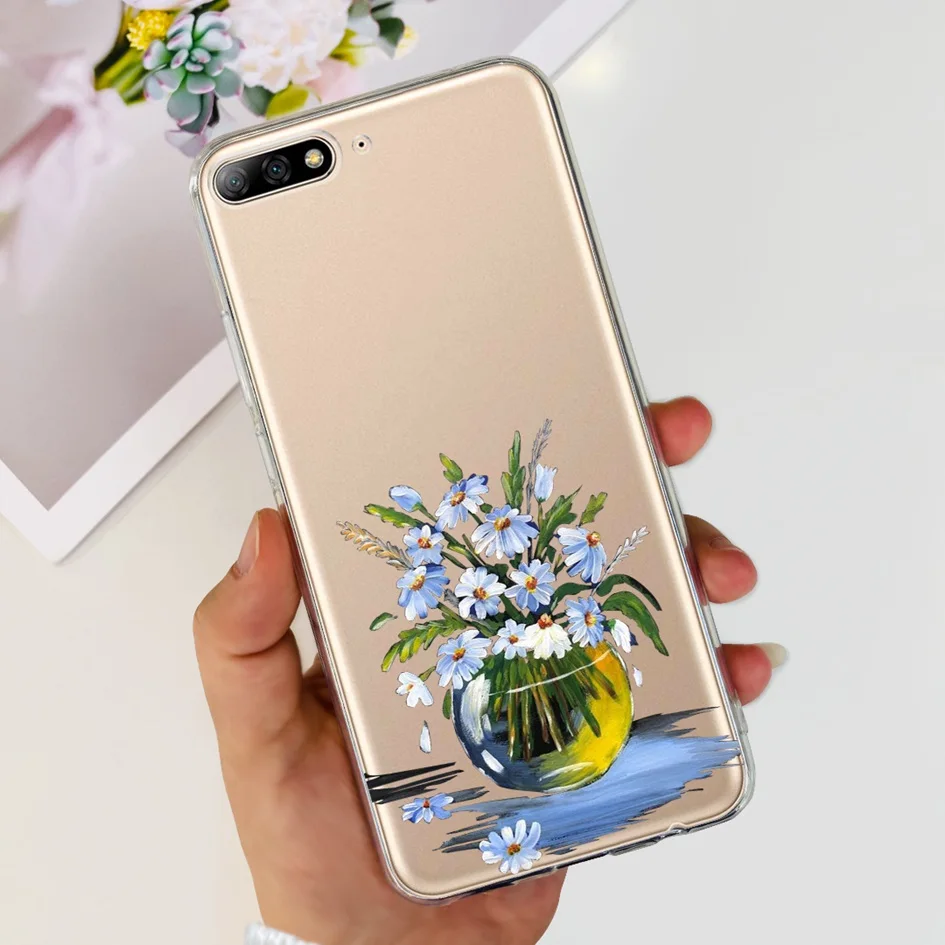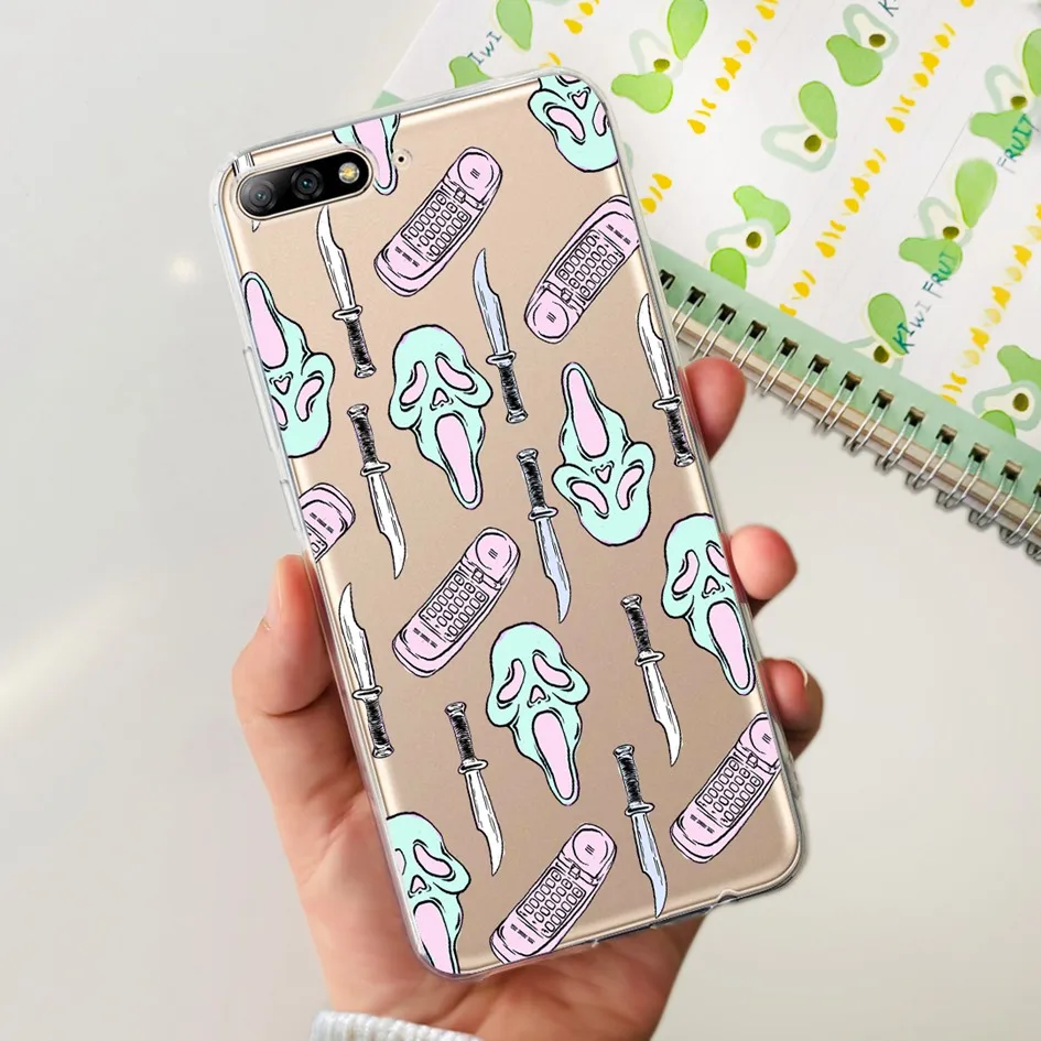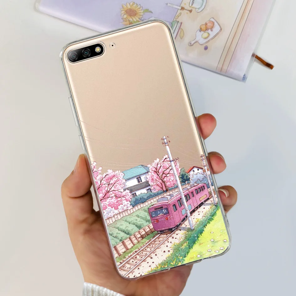 Para Huawei Y7 Pro 2018 Funda Linda Dinosaurio Gato Transparente TPU Funda de silicona suave para Huawei Y7 Prime 2018 Y7Pro 2018 Funda