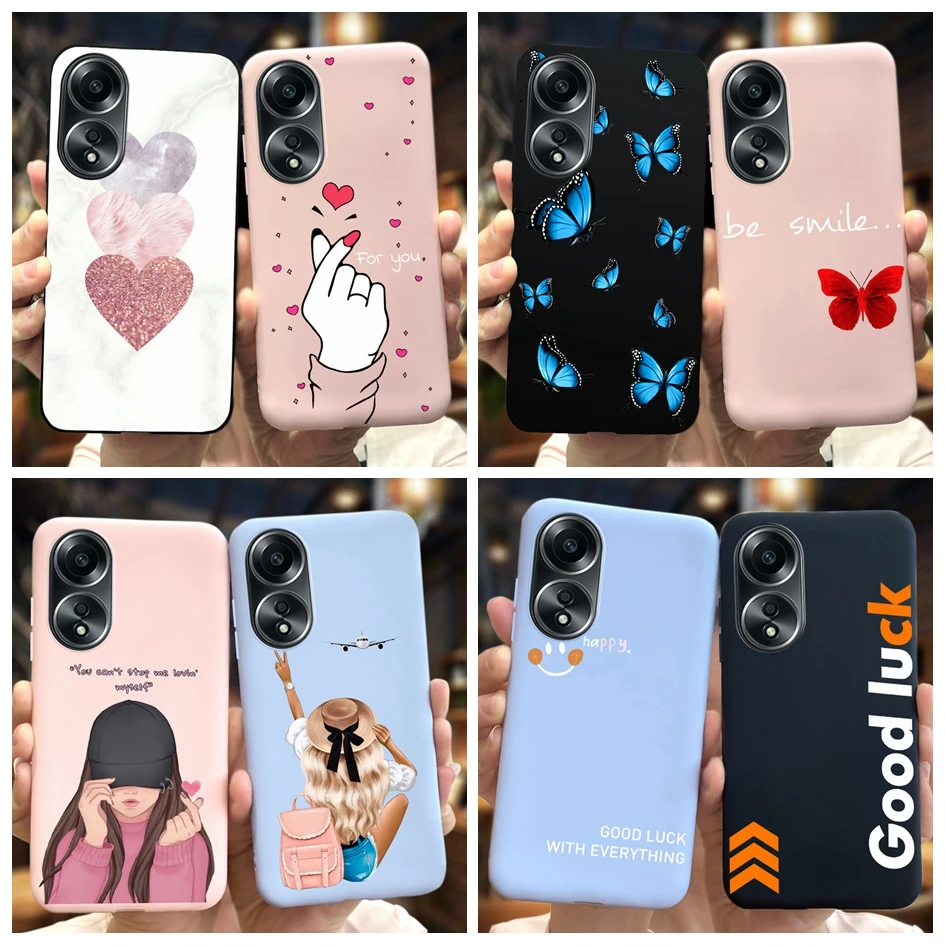 Comprar Funda trasera de silicona suave para OPPO A58 4G A 58 CPH2577, carcasa de teléfono, corazón de amor, mariposa, nueva moda