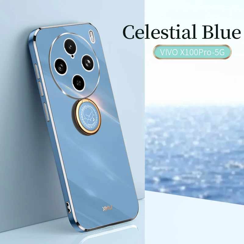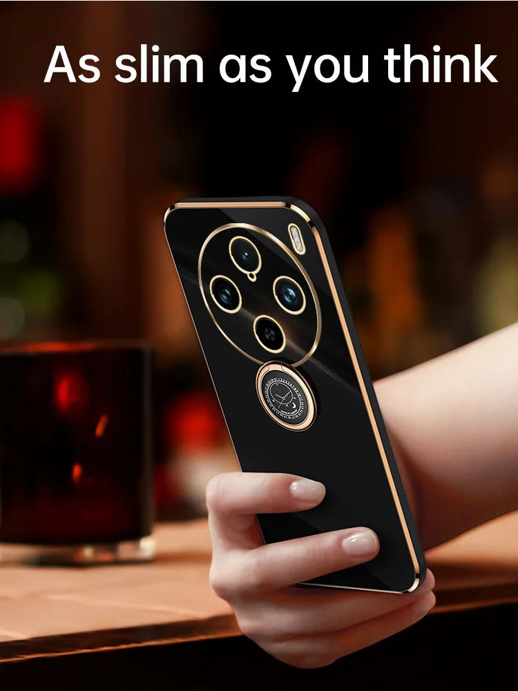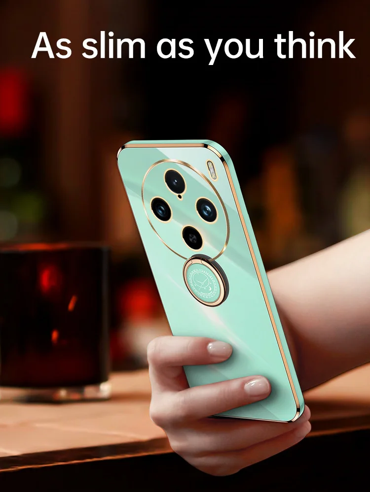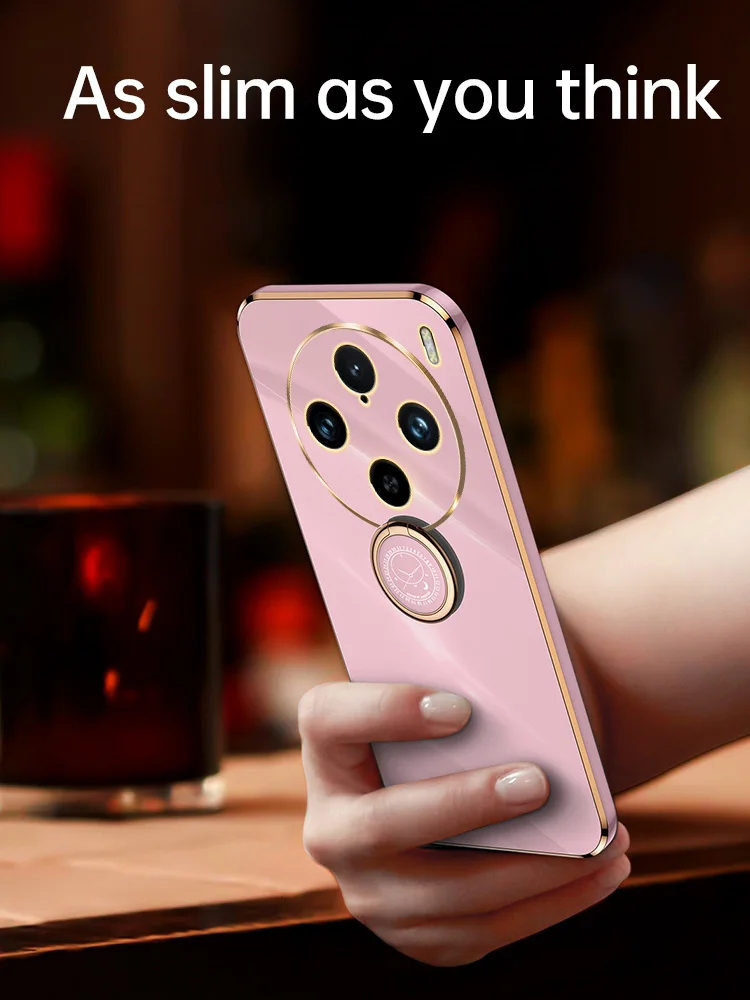 Para OPPO Find X7 Ultra 6D Chapado en Color caramelo funda trasera de silicona suave para OPPO Find X6 Pro X5 Ring Stand Slim Square Phone Cover