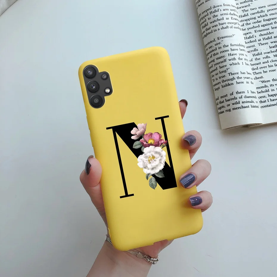 Para Samsung A32 4G A325F 5G funda con letra monograma flor funda trasera de silicona suave para Samsung Galaxy A32 5G A 32 A326B