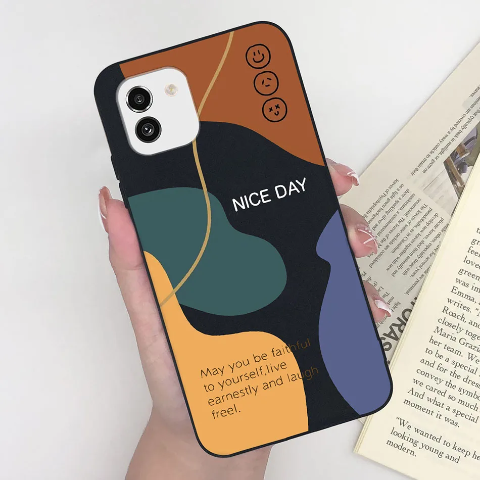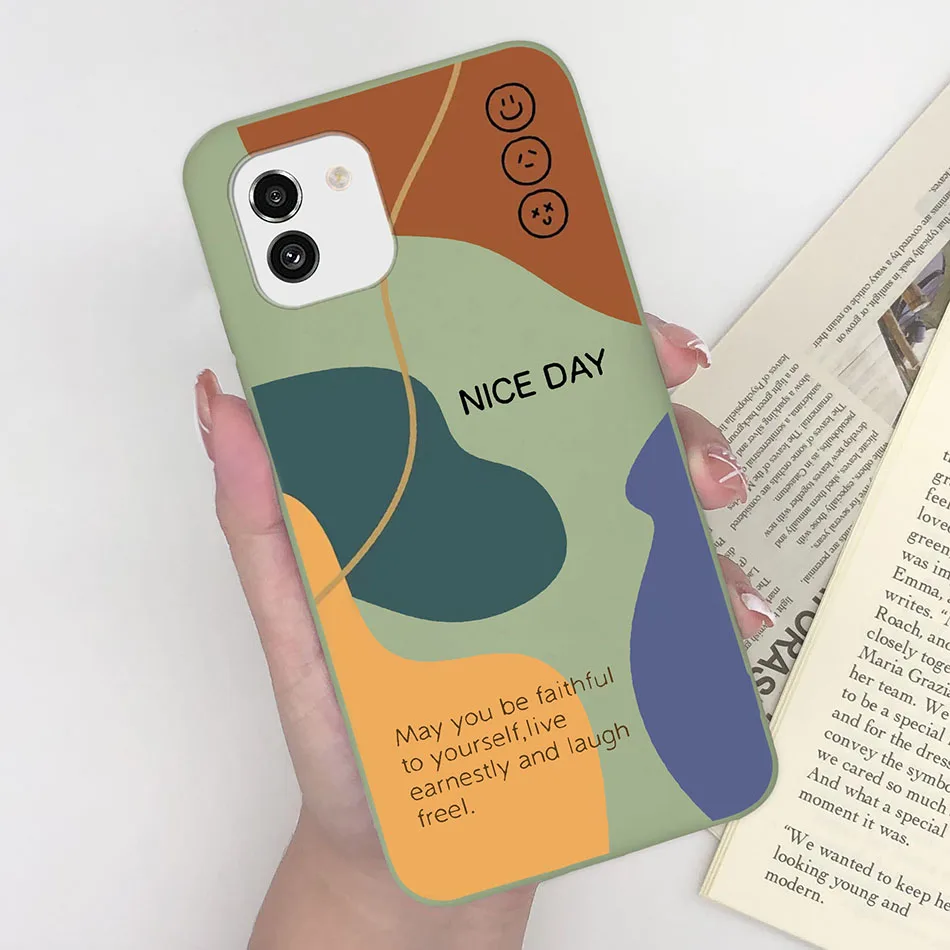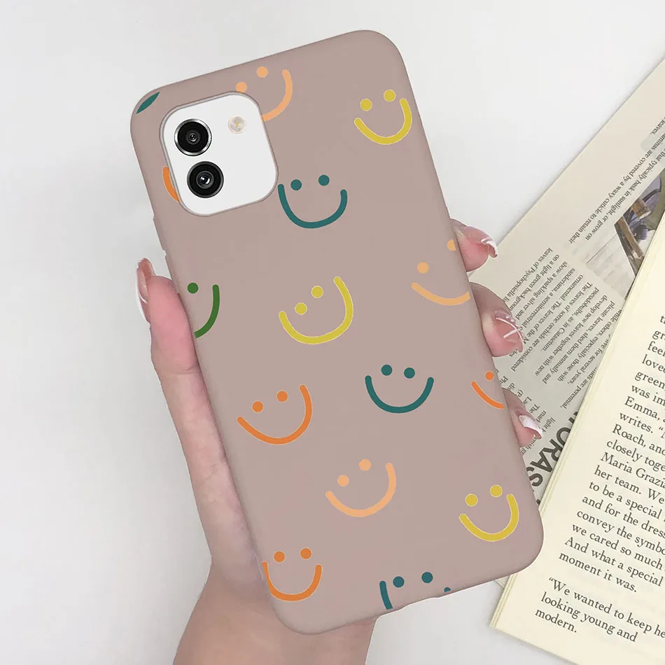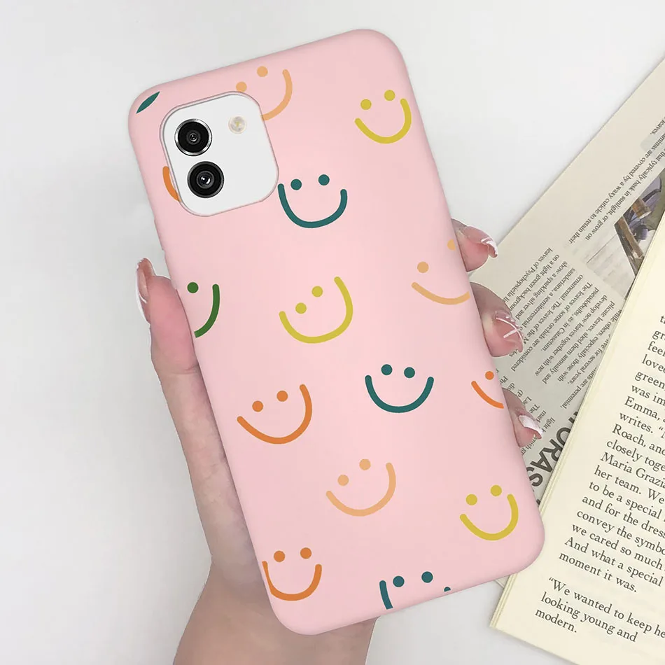 Funda trasera de silicona suave para Samsung Galaxy A03, carcasa con cara sonriente, bolsas de teléfono de moda, dimensiones 164