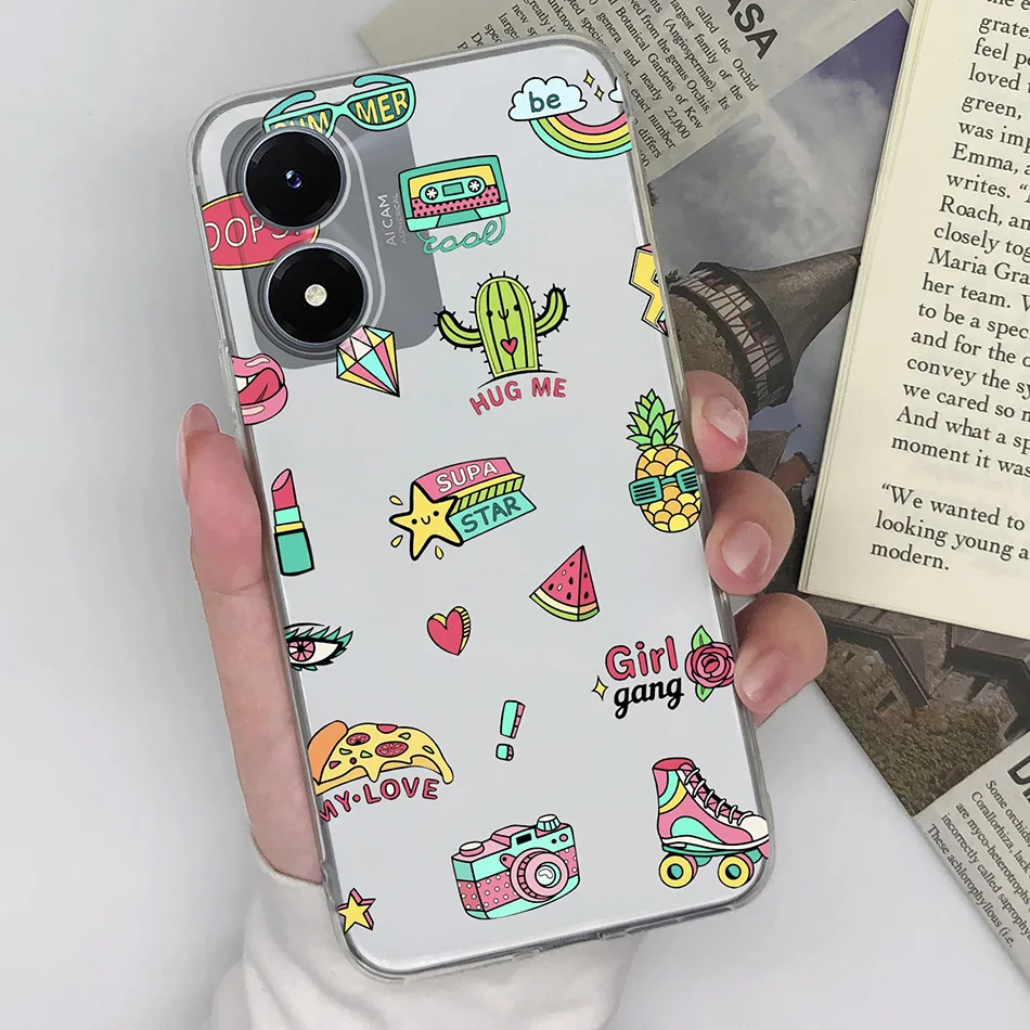 Para Vivo Y02S funda transparente TPU funda trasera de silicona suave para Vivo Y02S a prueba de golpes Coque VivoY02S Y 02S Fundas de moda