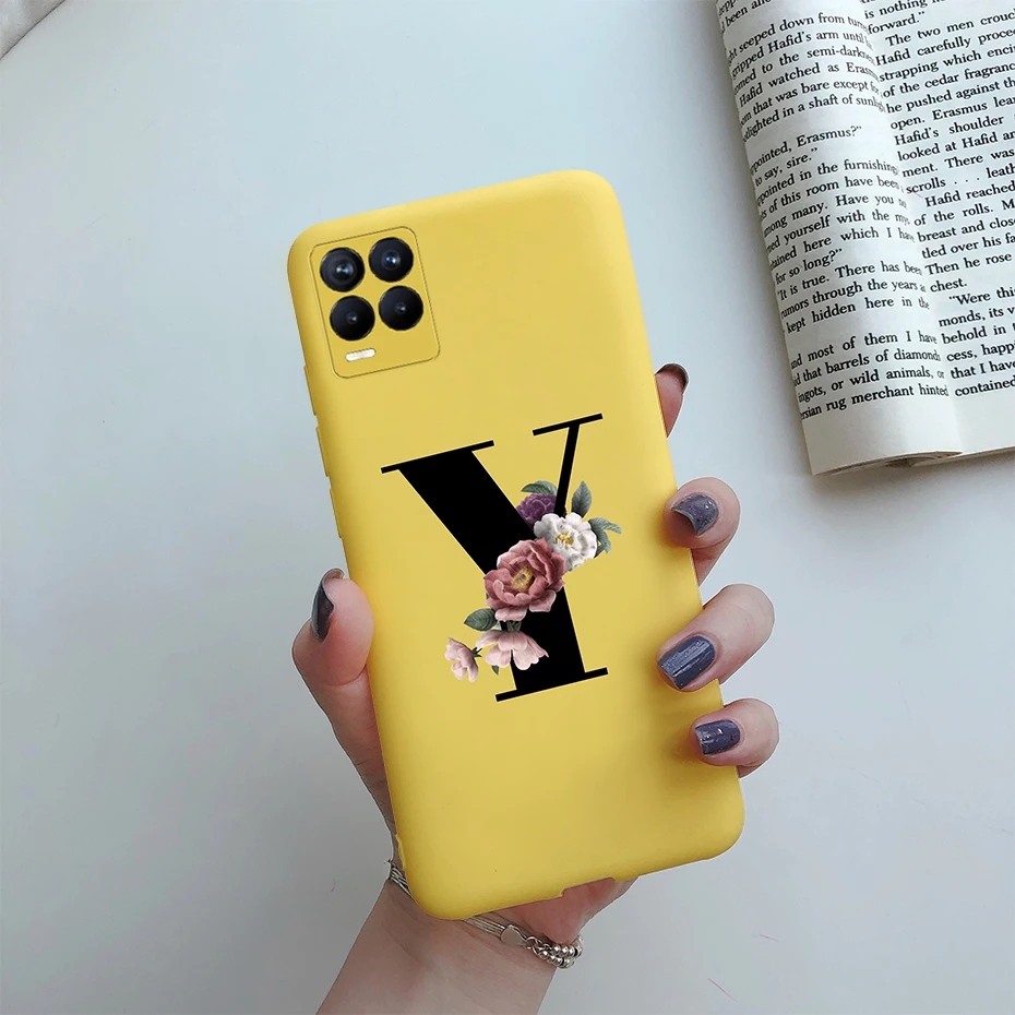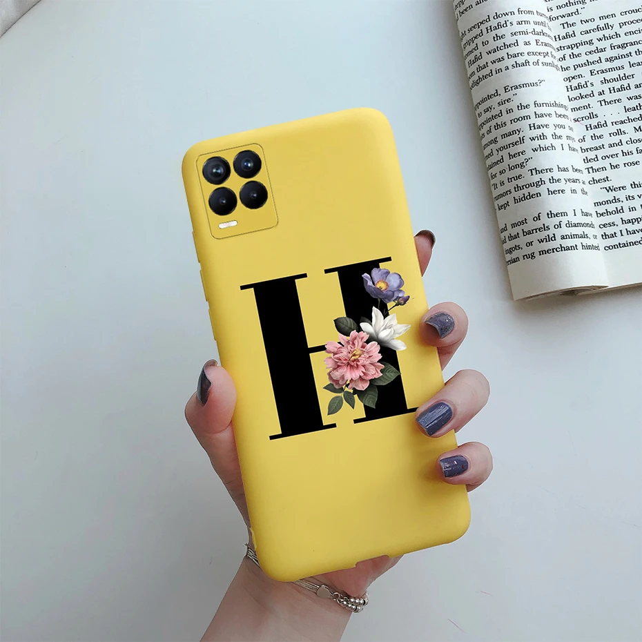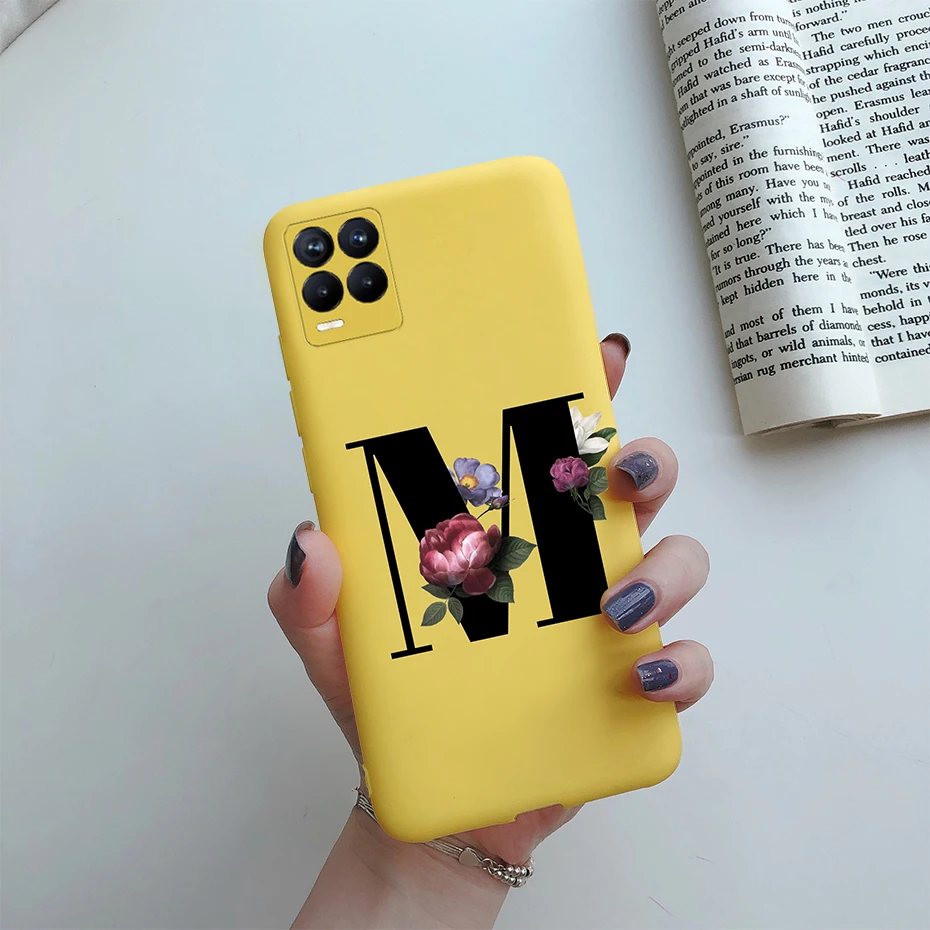 Para 8 Pro funda de silicona suave letra monograma flores funda trasera de teléfono para Oppo Realme8 4G RMX3085 Realme 8 Pro funda de parachoques