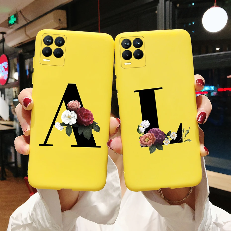 Para 8 Pro funda de silicona suave letra monograma flores funda trasera de teléfono para Oppo Realme8 4G RMX3085 Realme 8 Pro funda de parachoques