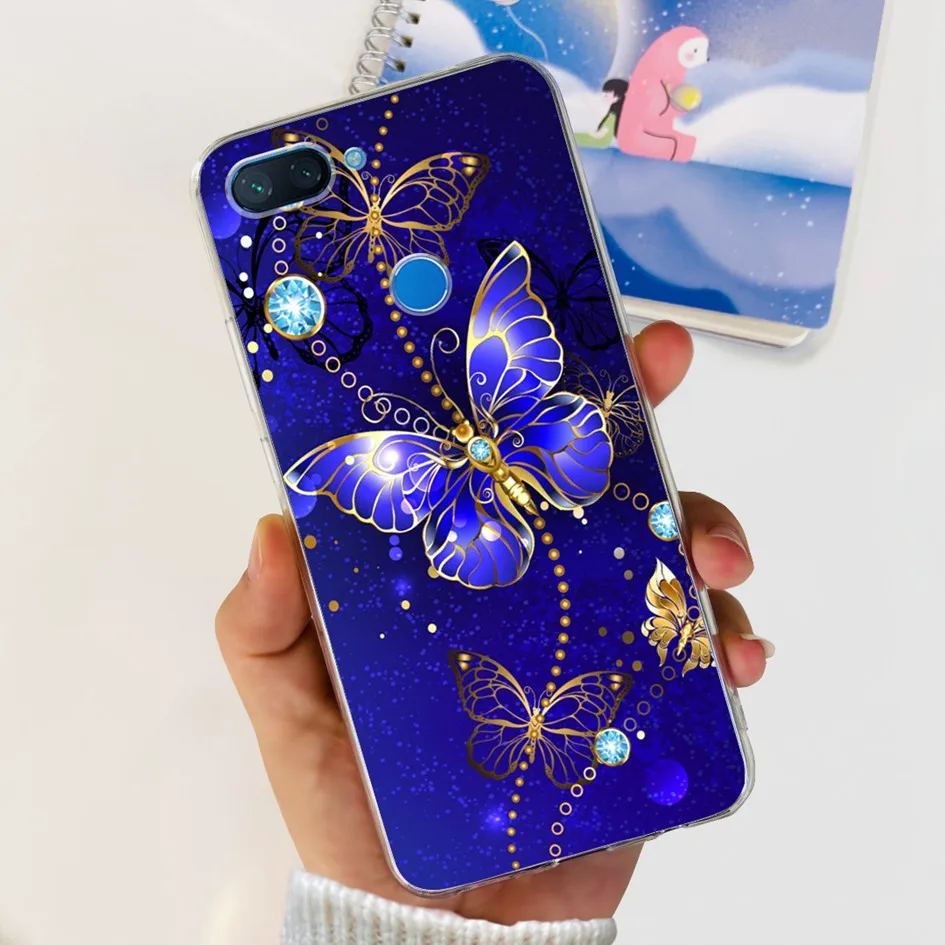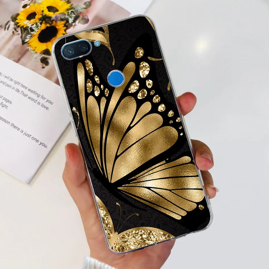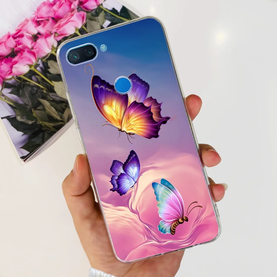 Para Xiaomi Mi 8 Lite funda de moda Flor Mariposa suave funda transparente trasera de silicona para Xiomi Mi 8 Lite Mi8 Lite fundas de teléfono