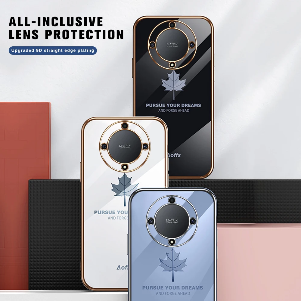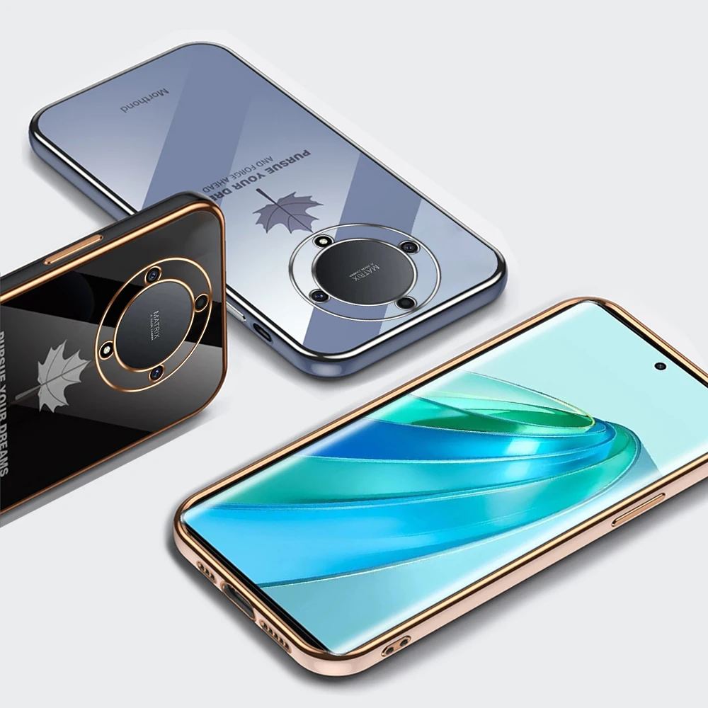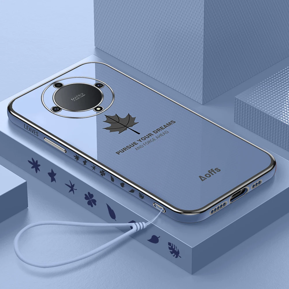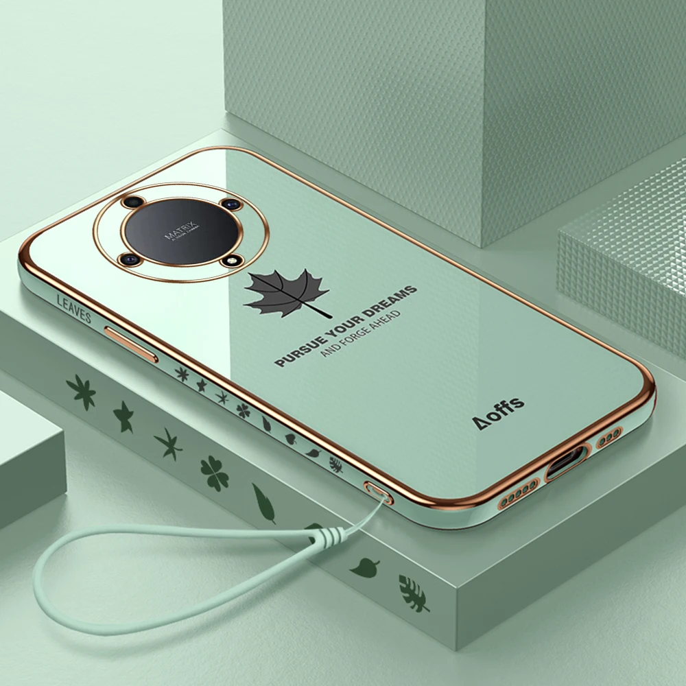 Comprar Funda trasera suave de TPU con patrón de hoja de arce chapada para Honor X9a 5G, funda a prueba de golpes con cordón, Honor X9a Honar Honer X 9a 5G