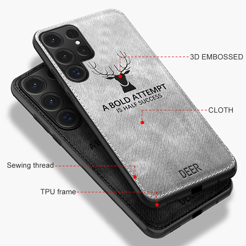 Para Samsung Galaxy S23 Ultra Case Deer Pattern Fabric Cloth Contraportada SamsungS23Ultra S23Ultra 5G Soft Shockproof Shell Capas