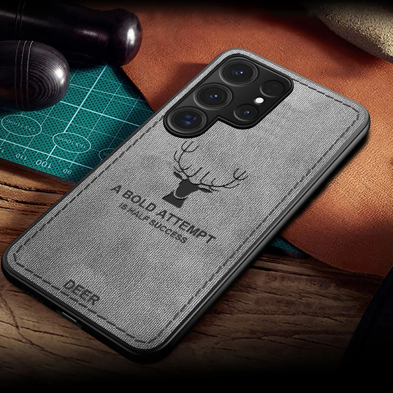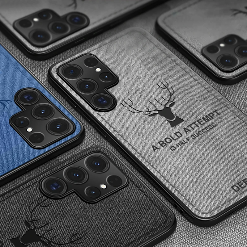 Comprar Funda trasera de tela con patrón de ciervo para Samsung Galaxy S24 Ultra, carcasa de TPU, Marco suave, Fundas protectoras en SamsungS24 S 24 Ultra 5G