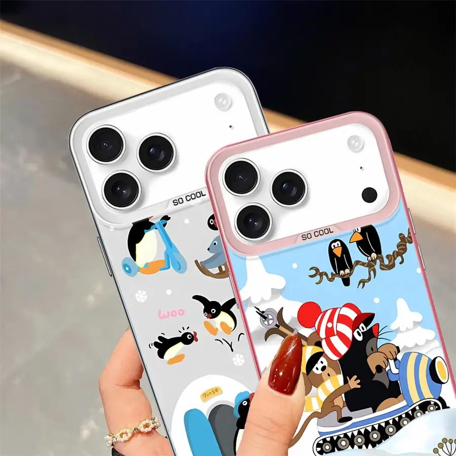 Funda trasera de teléfono para iPhone 16 17 Pro Max XR 16e 17Air 13 XS 15 Plus 12 11 14 Snow Winter Cartoon P-ingu