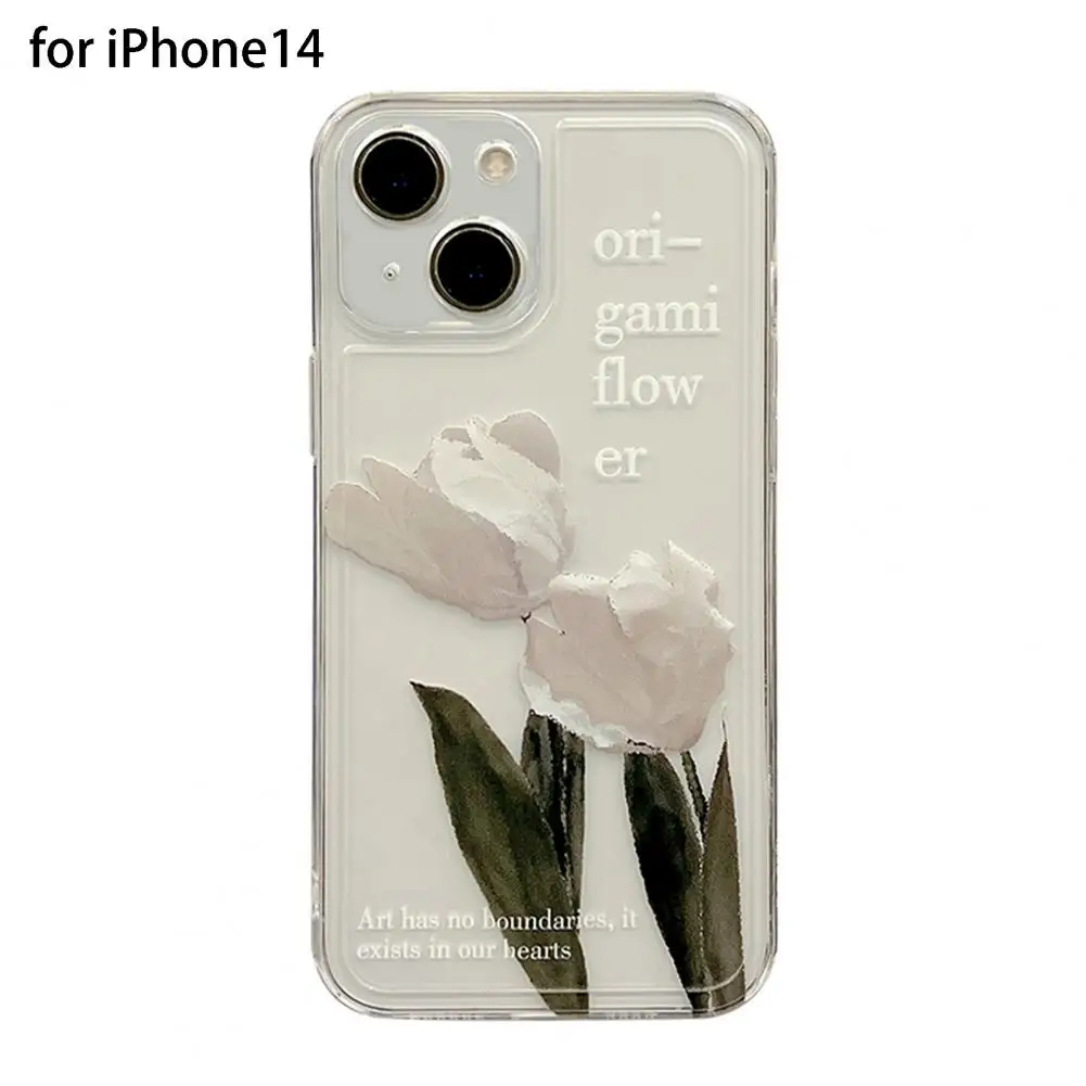 Características: transparente, estampado de letras y flores, a prueba de golpes