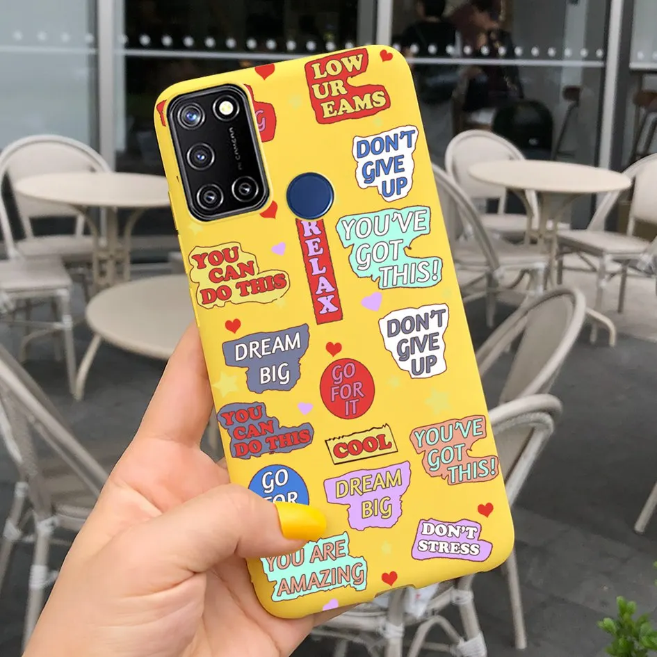 Para Realme C17 Funda 2020 Etiqueta de moda para teléfono cubierta trasera para Realme 7i RMX2103 Funda Realme C17 RMX2101 carcasa mate parachoques