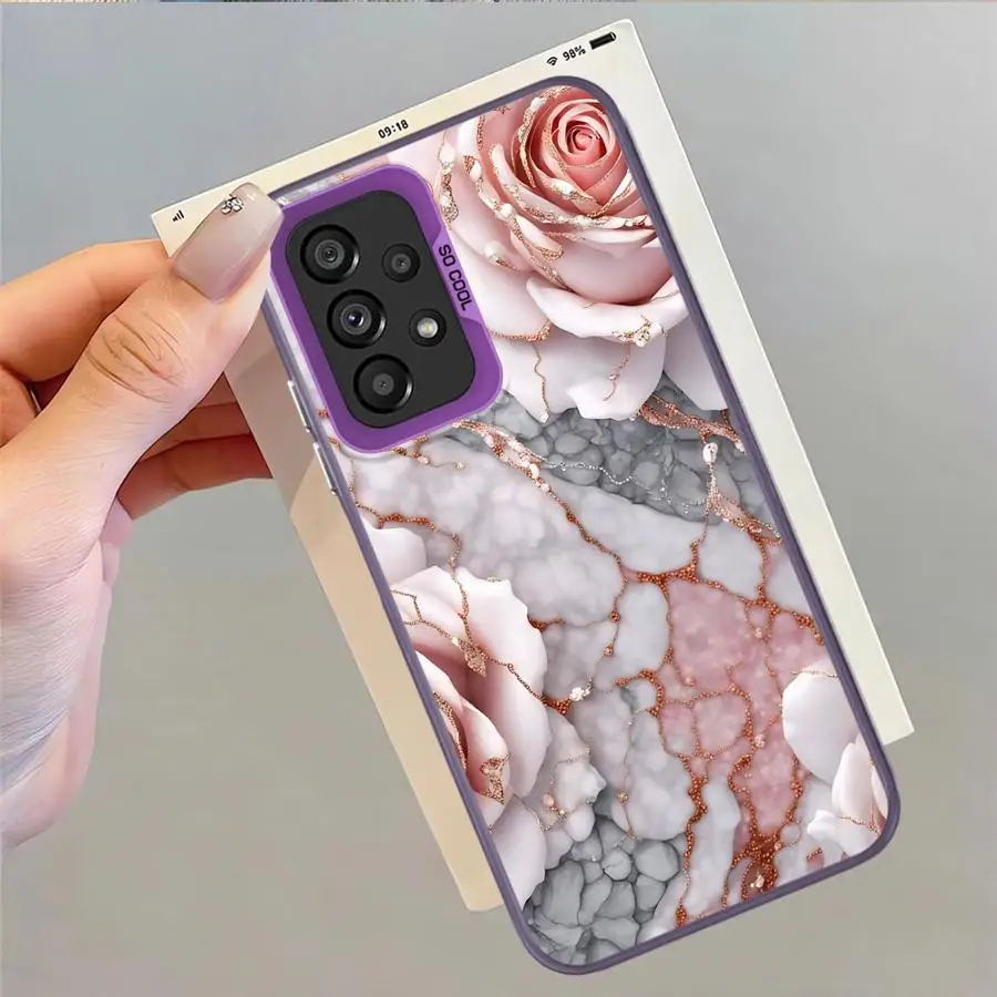 Funda trasera de teléfono para Samsung Galaxy S24 FE Note 20 Ultra S23 S21 S20 Plus S22 S23 S25 flor mármol - imagen 5