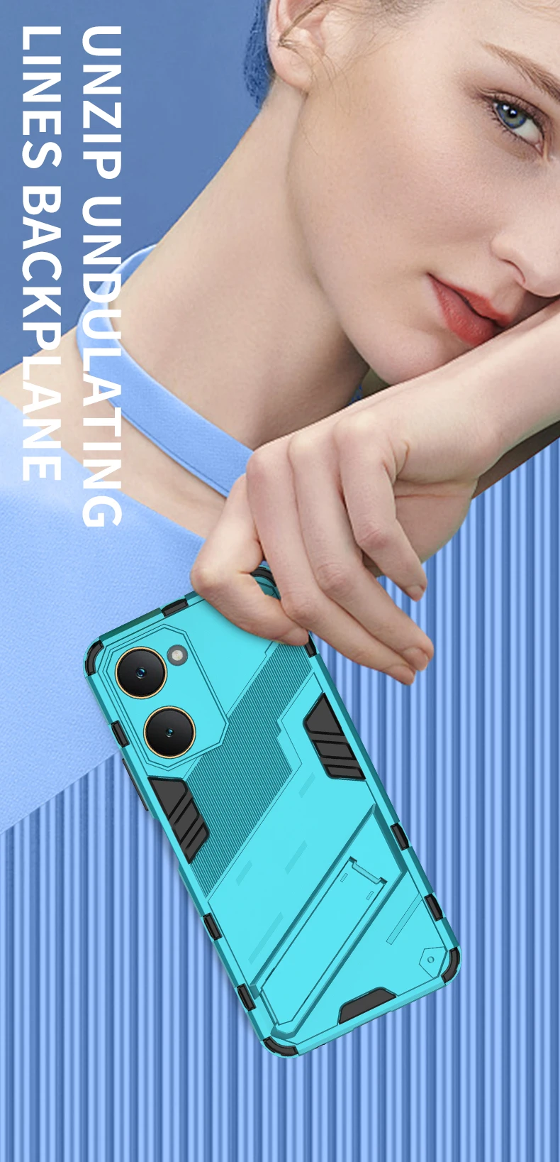 Para Vivo Y18 4G contraportada funda de teléfono armadura a prueba de golpes soporte magnético anticaída proteger Coque Funda