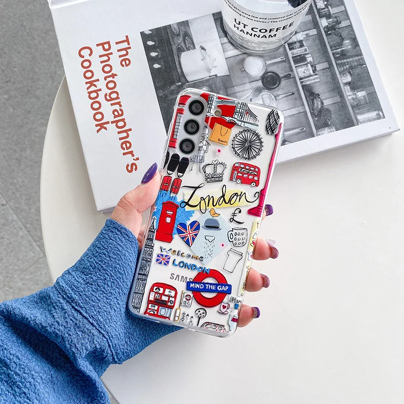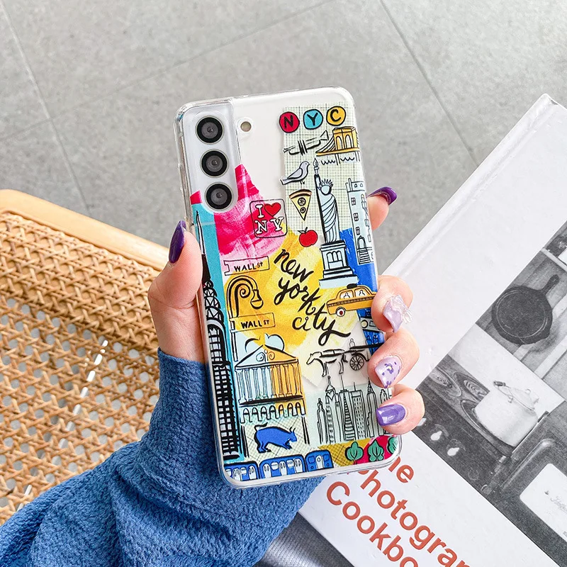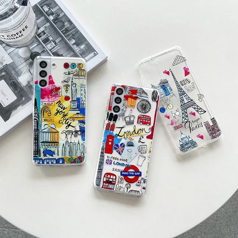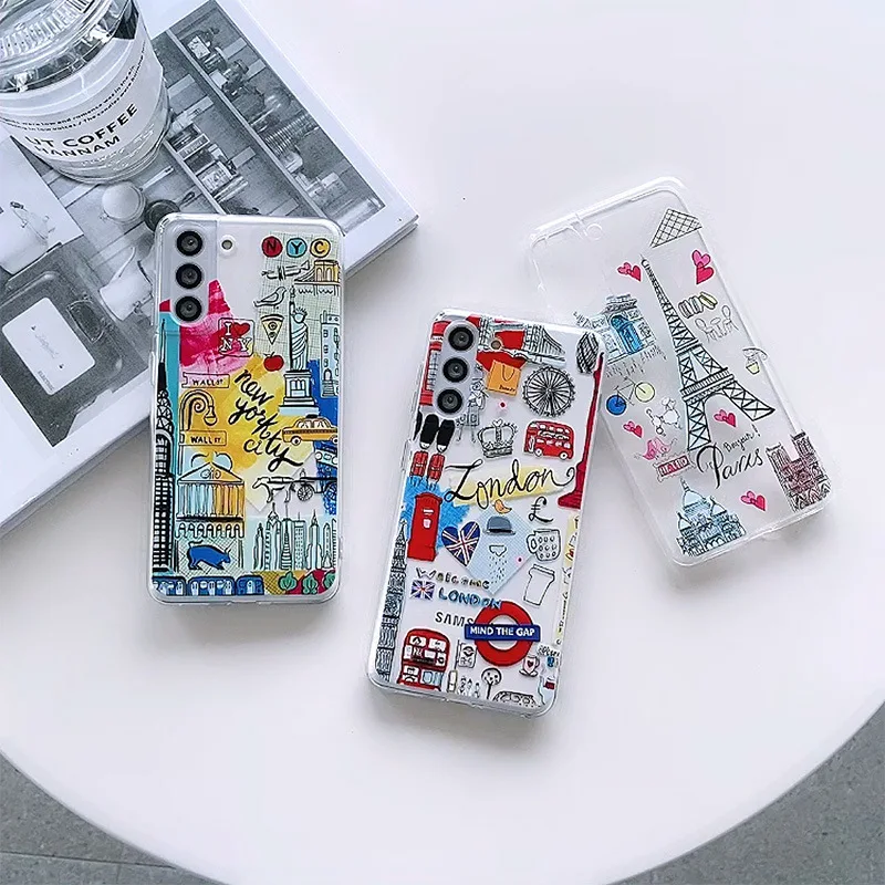 Samsung Galaxy S23 S21 S20 Ultra Plus FE 5G A52S A53 A73 A82 A72 A32 Note 20 Case Travel Landscape Soft Clear TPU Cover Fundas