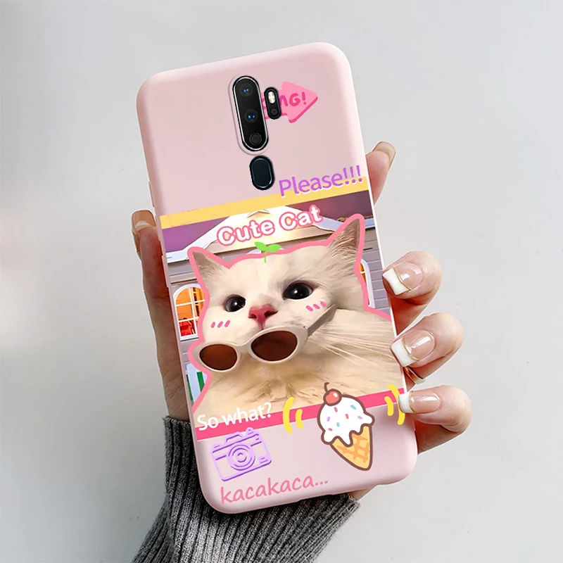 Funda trasera de TPU suave con dibujos animados de gato para Oppo, carcasa protectora de silicona para Oppo A9, A5, 2020