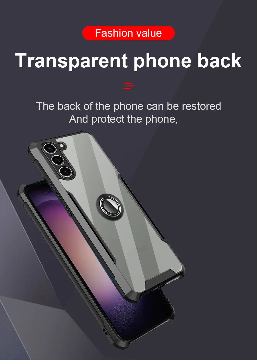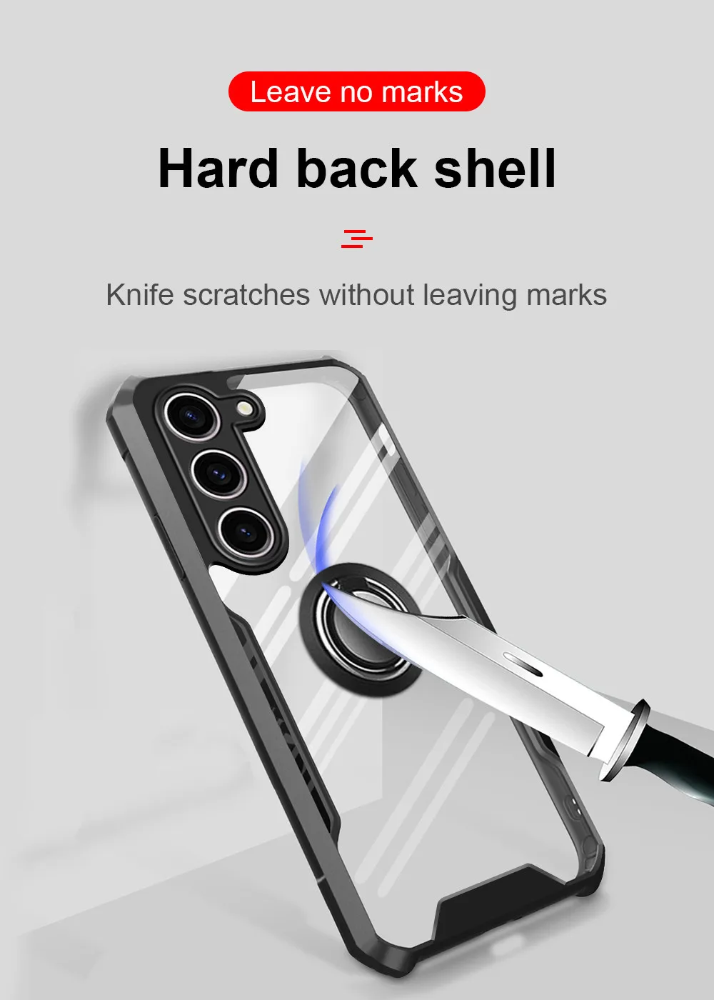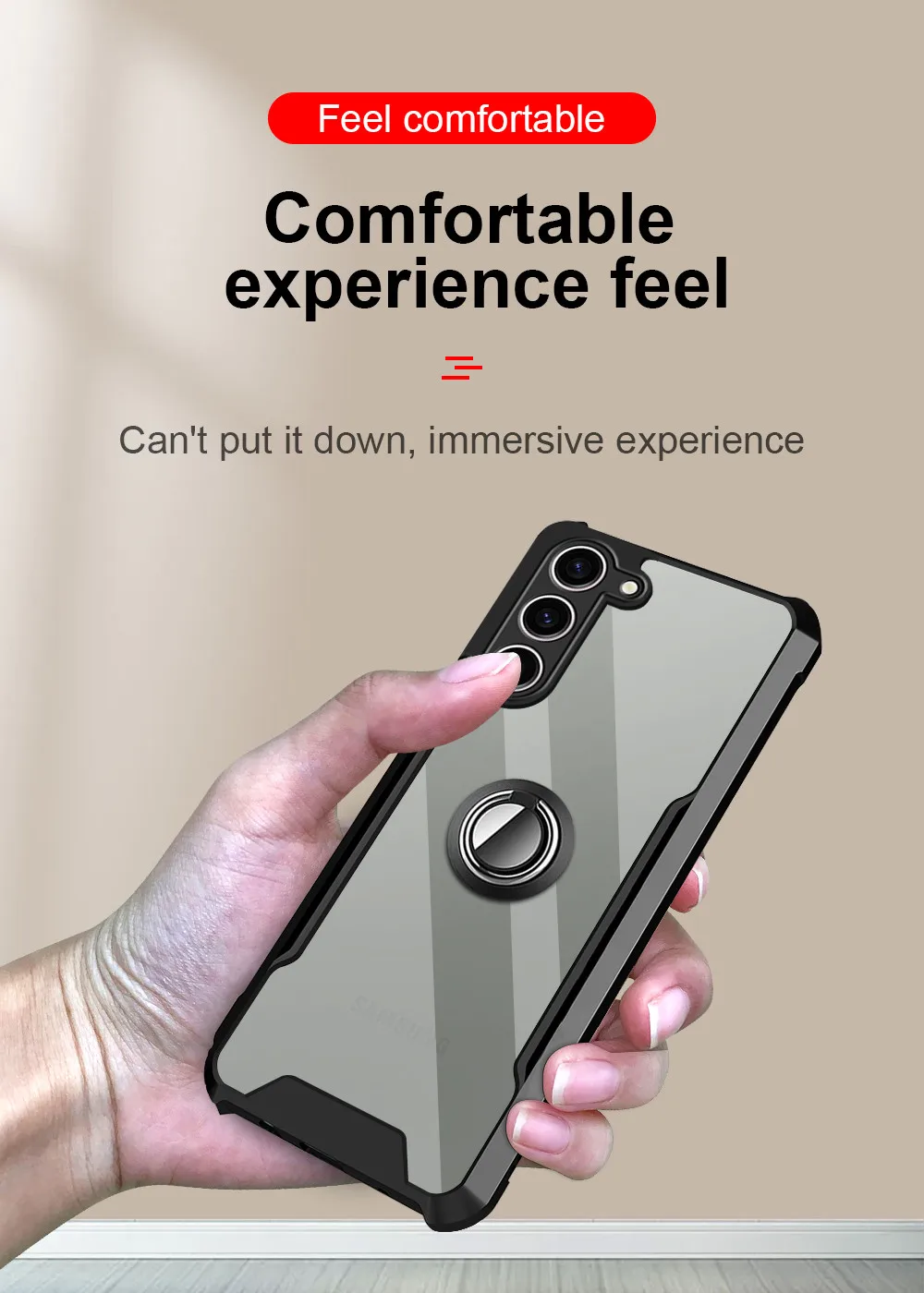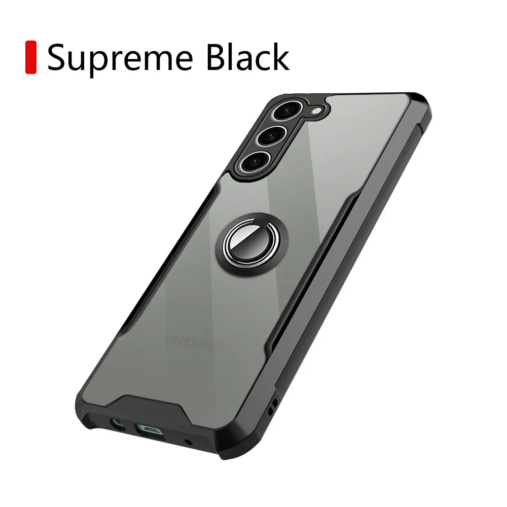 Coque trasero transparente acrílico para Samsung Galaxy S23 FE Ultra Plus funda a prueba de golpes PC duro anillo soporte cubierta SamsungS23 FE S23FE