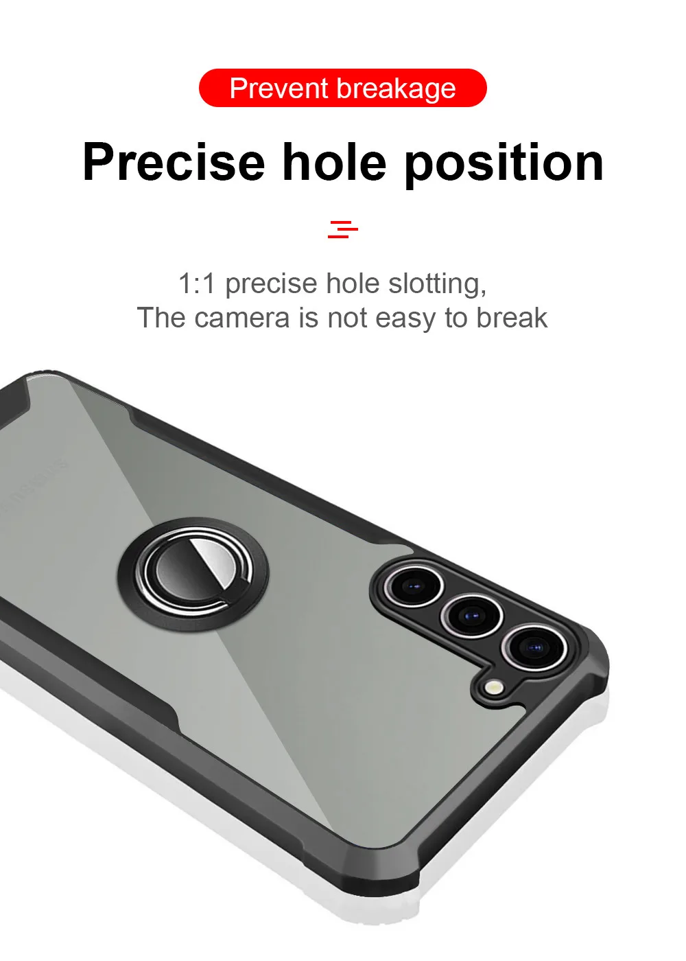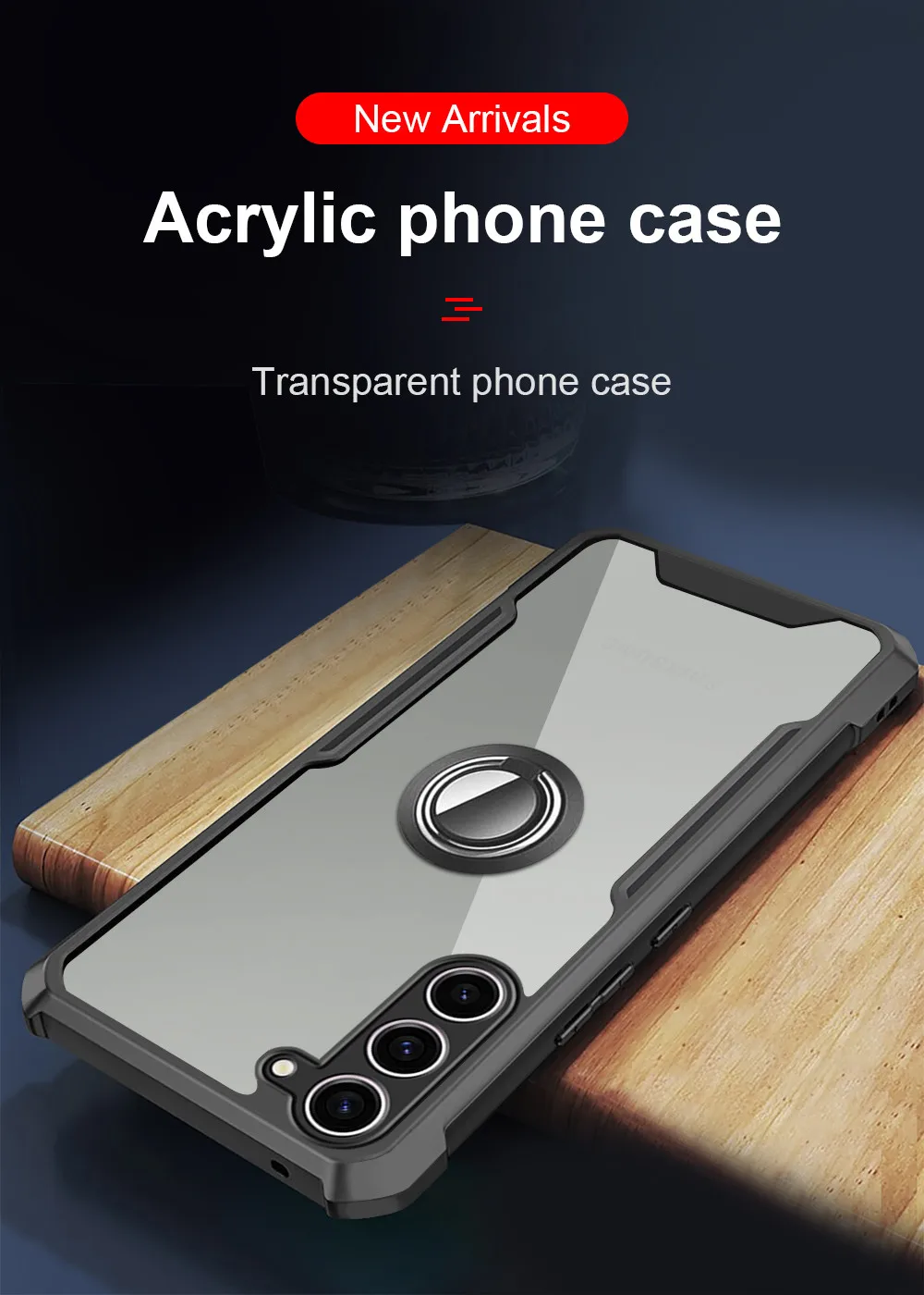 Comprar Funda trasera transparente de acrílico para Samsung Galaxy S23 FE Ultra Plus, carcasa dura a prueba de golpes, soporte de anillo de PC, SamsungS23 FE S23FE