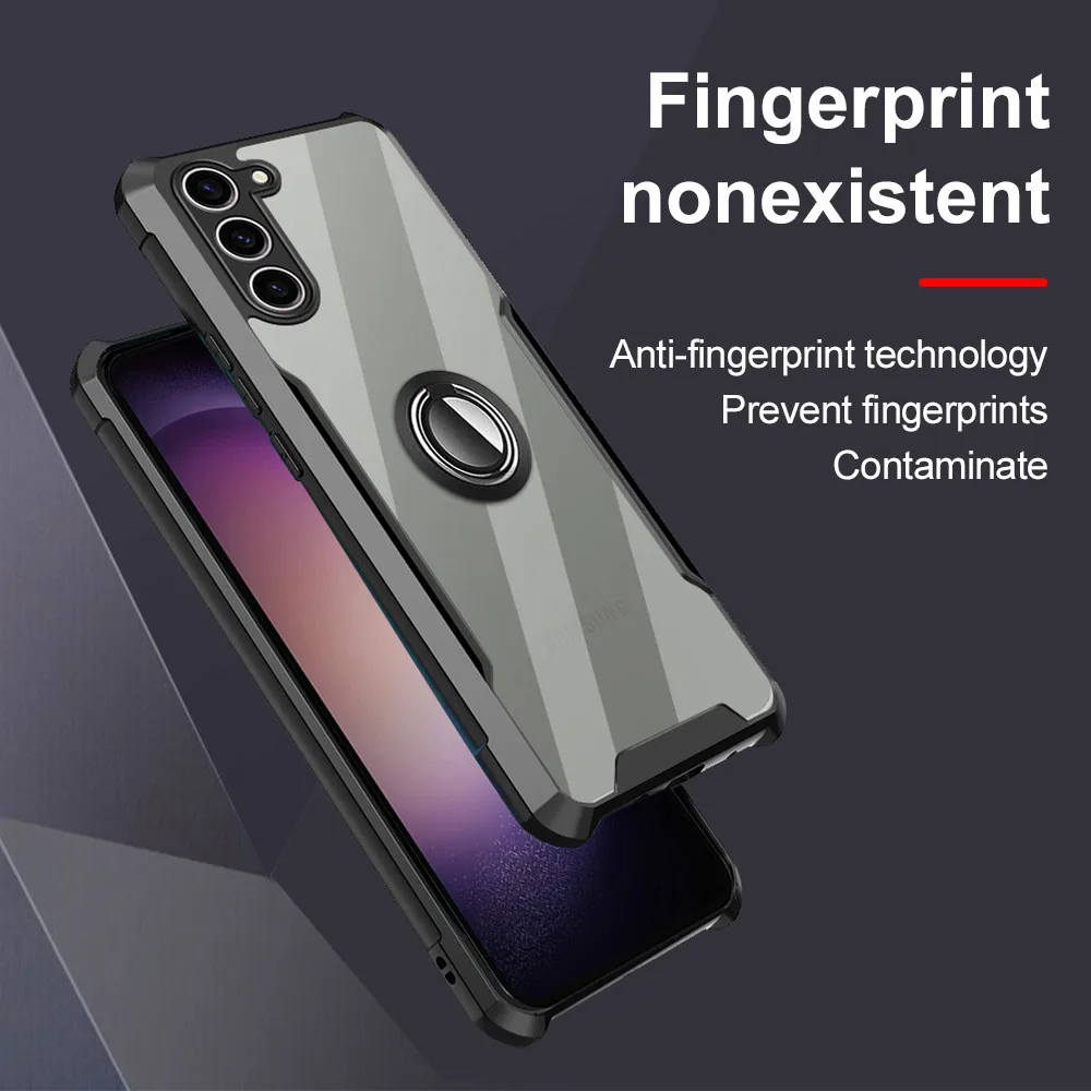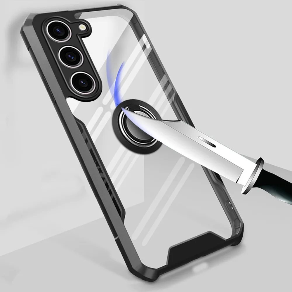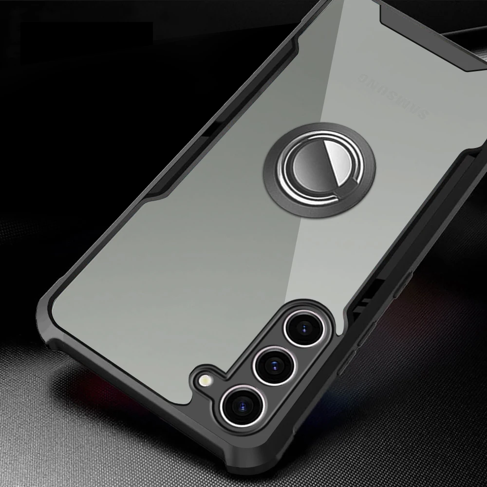 Coque trasero transparente acrílico para Samsung Galaxy S23 FE Ultra Plus funda a prueba de golpes PC duro anillo soporte cubierta SamsungS23 FE S23FE