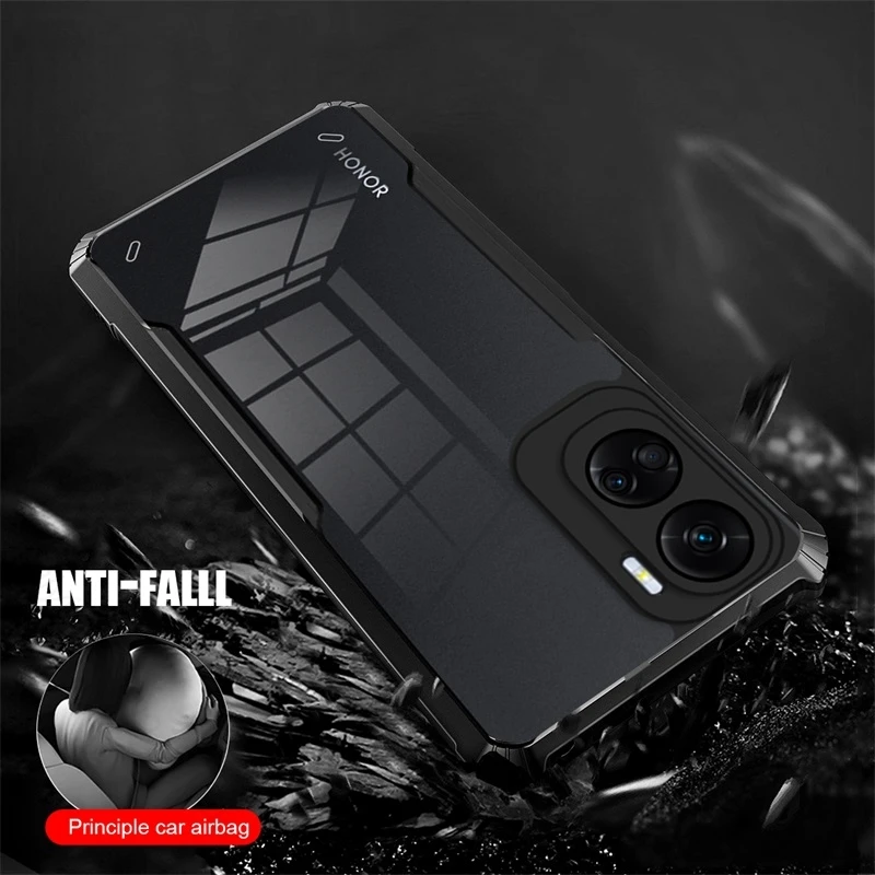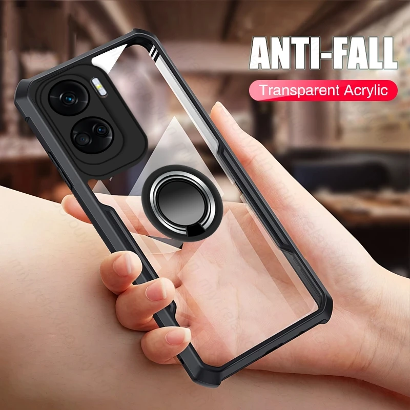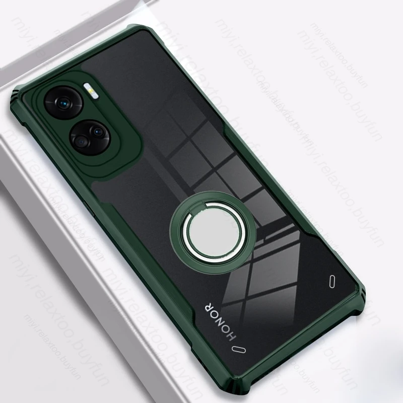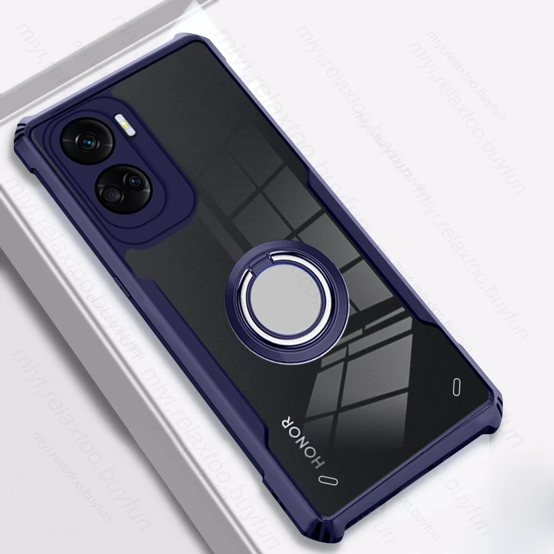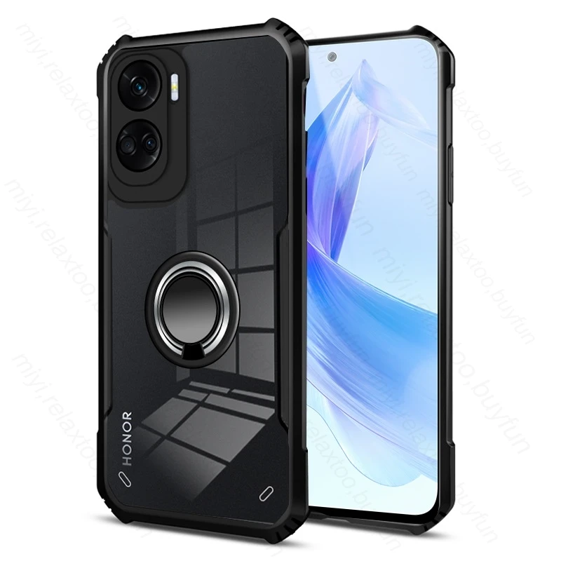 Comprar Funda trasera transparente de acrílico TPU para Honor 90 Lite 5G, funda con soporte magnético, anillo a prueba de golpes, Coque Honer 90 Light CRT-NX1 6,7"