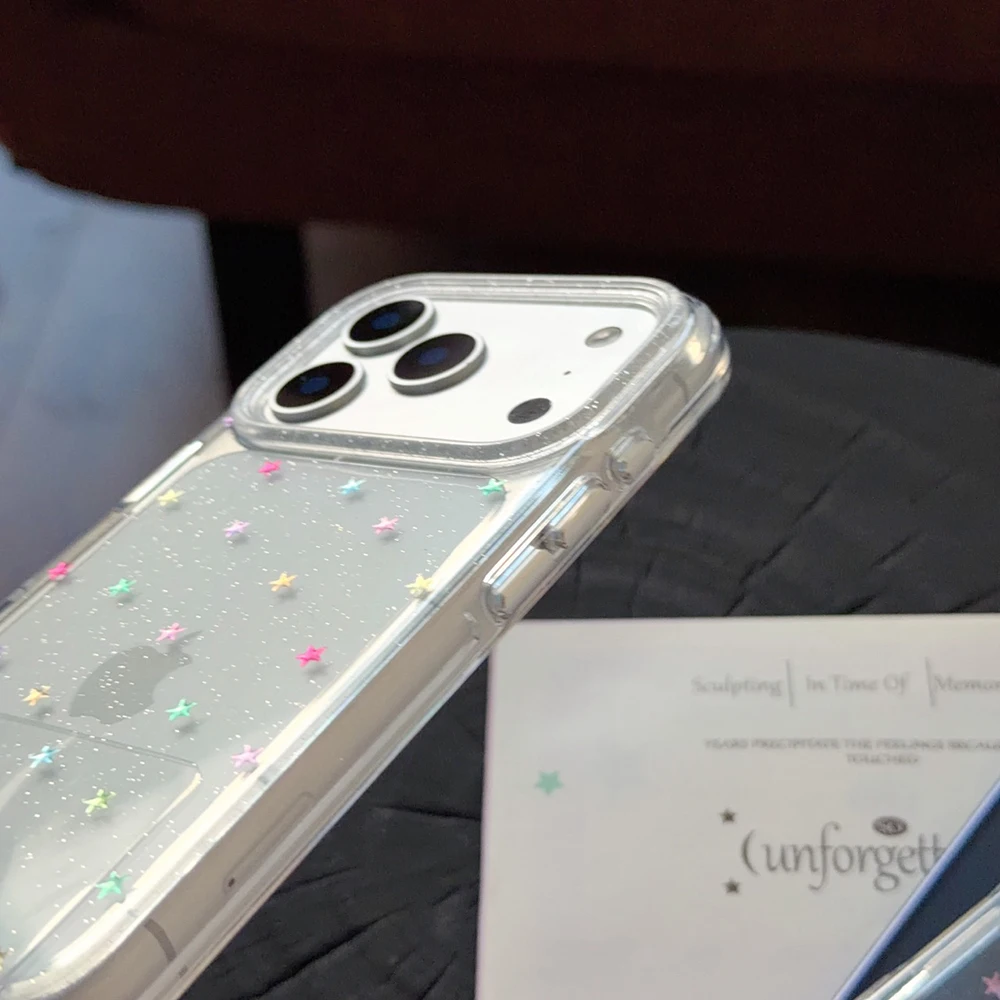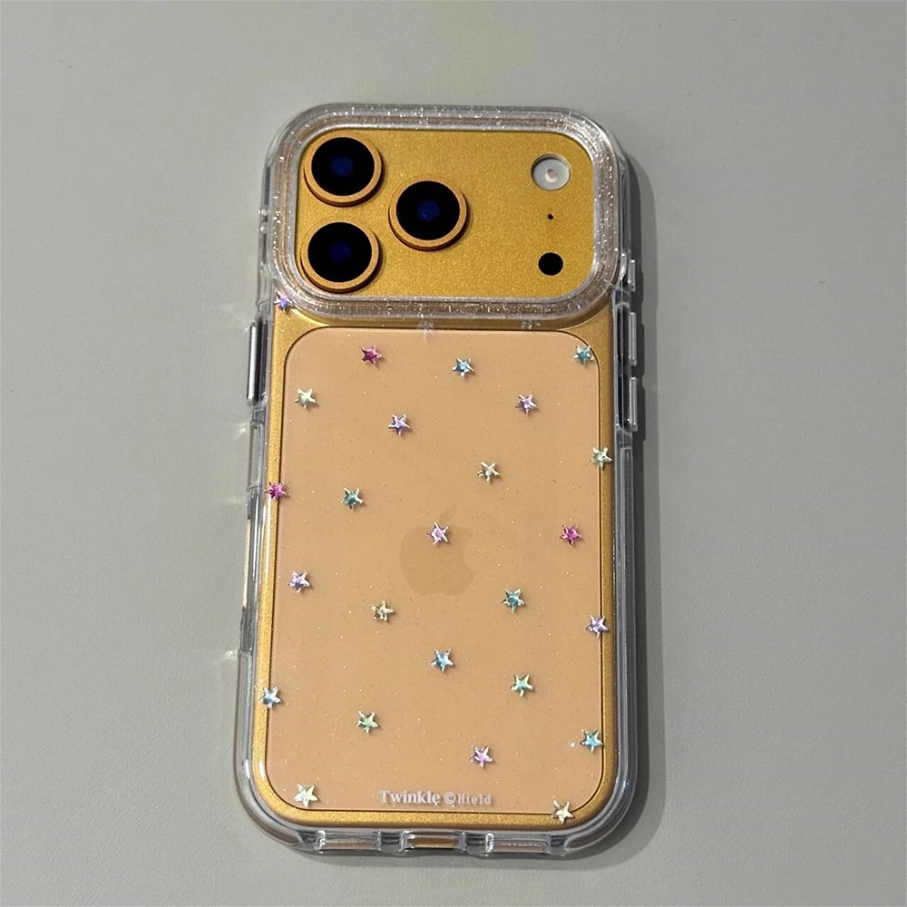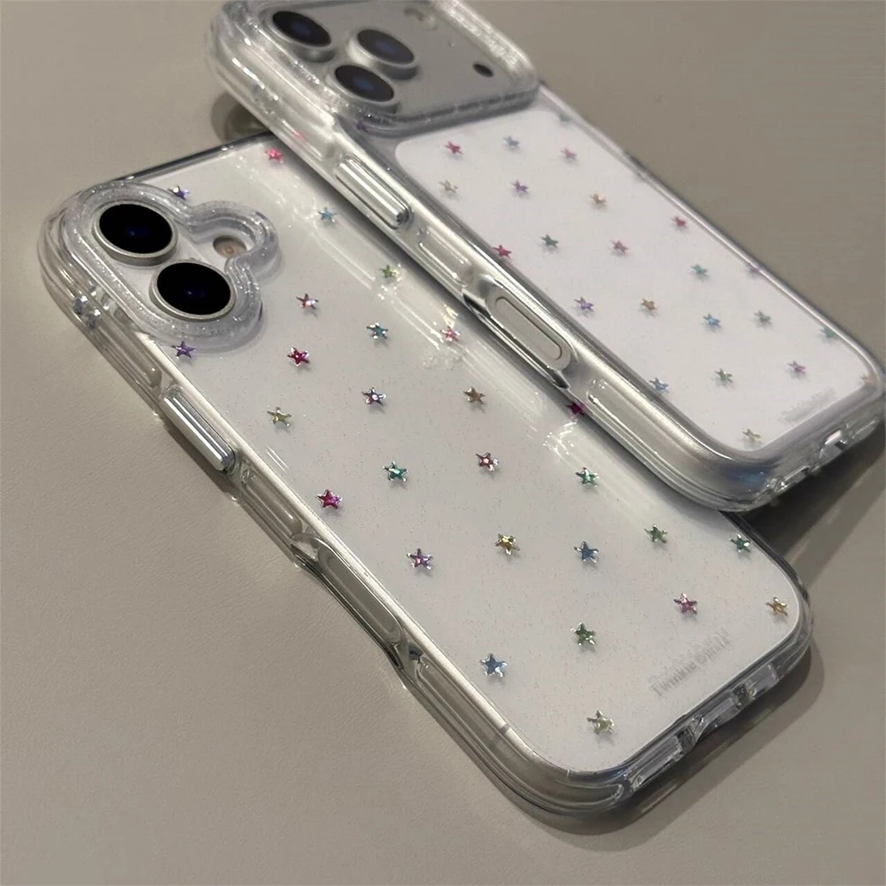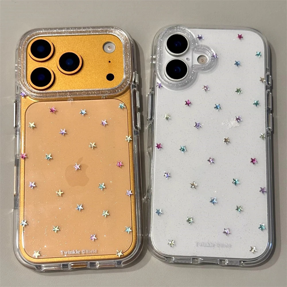 Funda trasera transparente con purpurina y estrellas Imd para Iphone 17 16 Pro Max 13 14 15 Promax Ins Protector funda de teléfono a prueba de golpes
