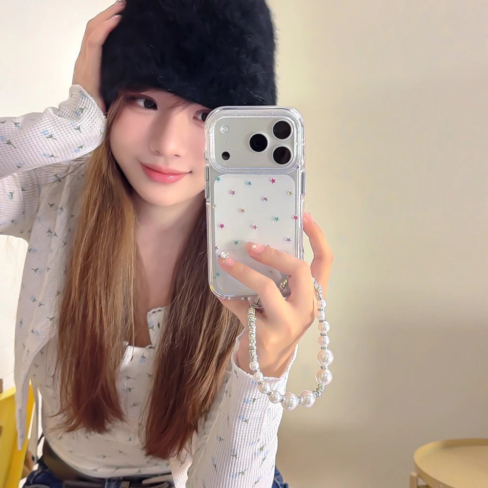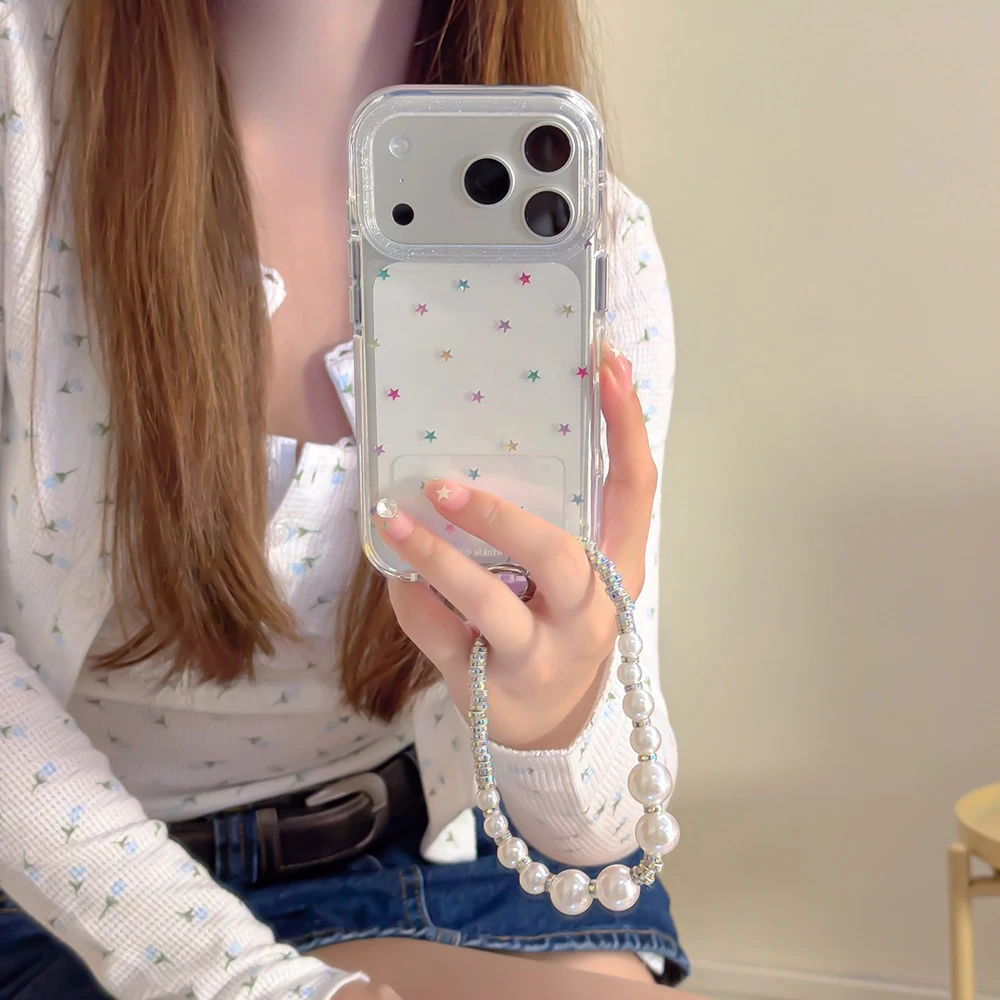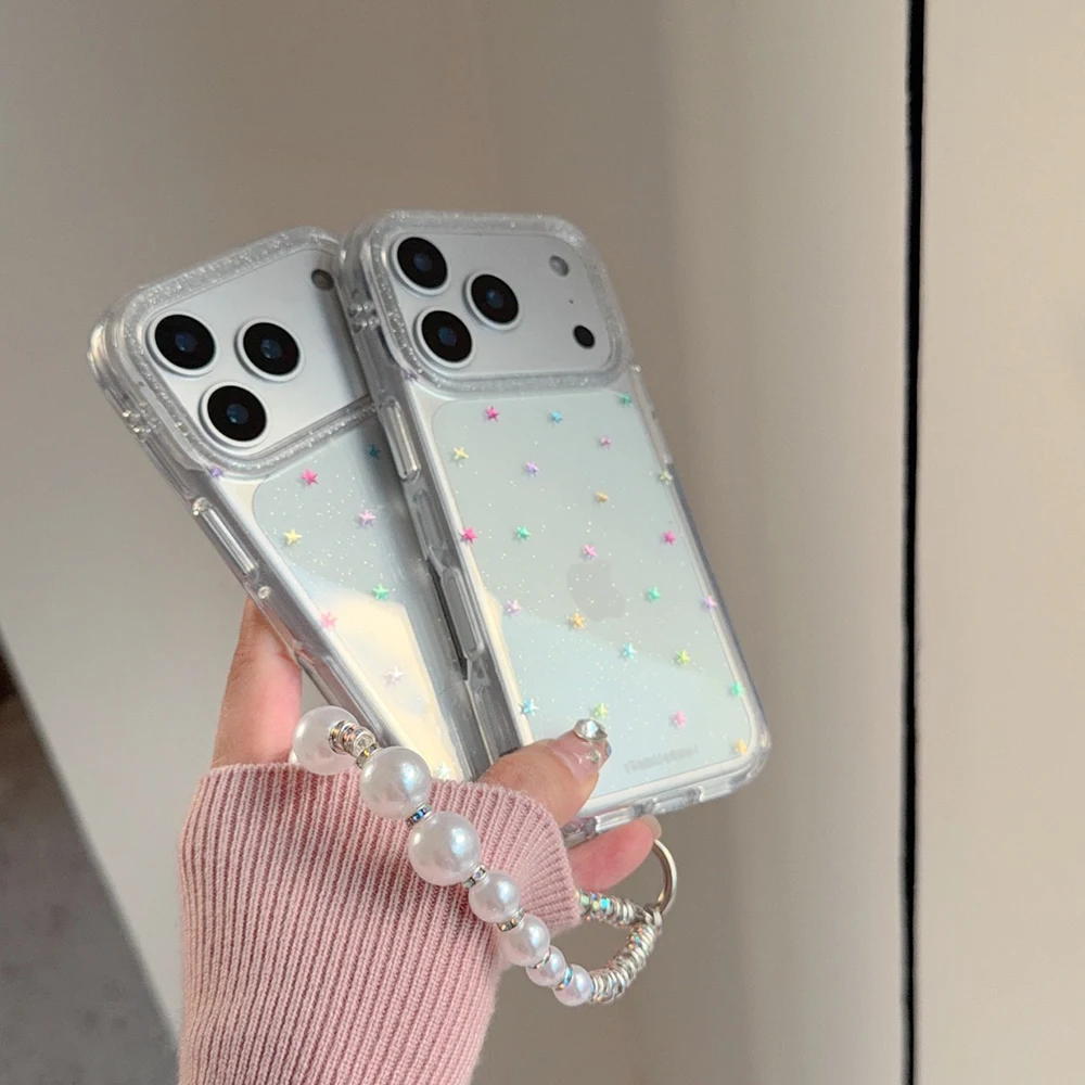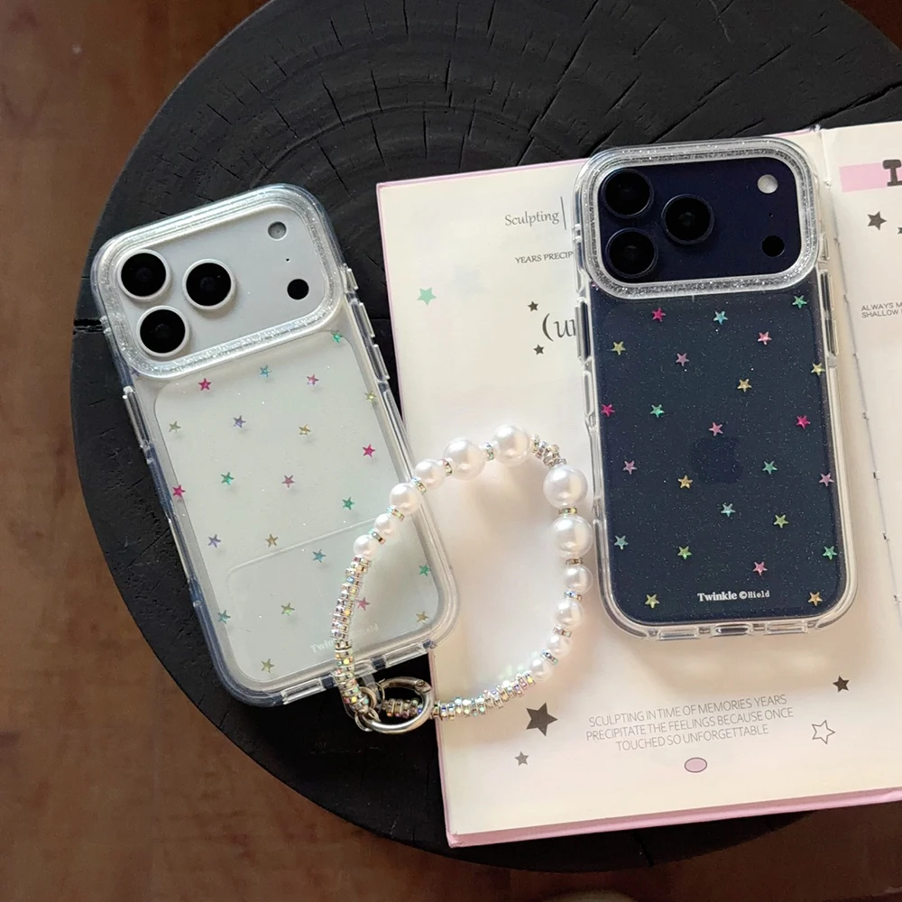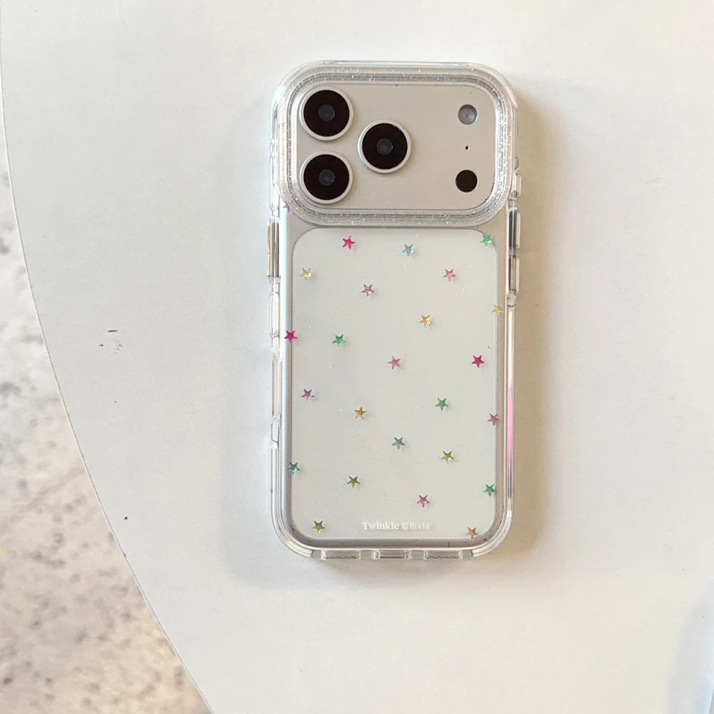 Funda trasera transparente con purpurina y estrellas Imd para Iphone 17 16 Pro Max 13 14 15 Promax Ins Protector funda de teléfono a prueba de golpes