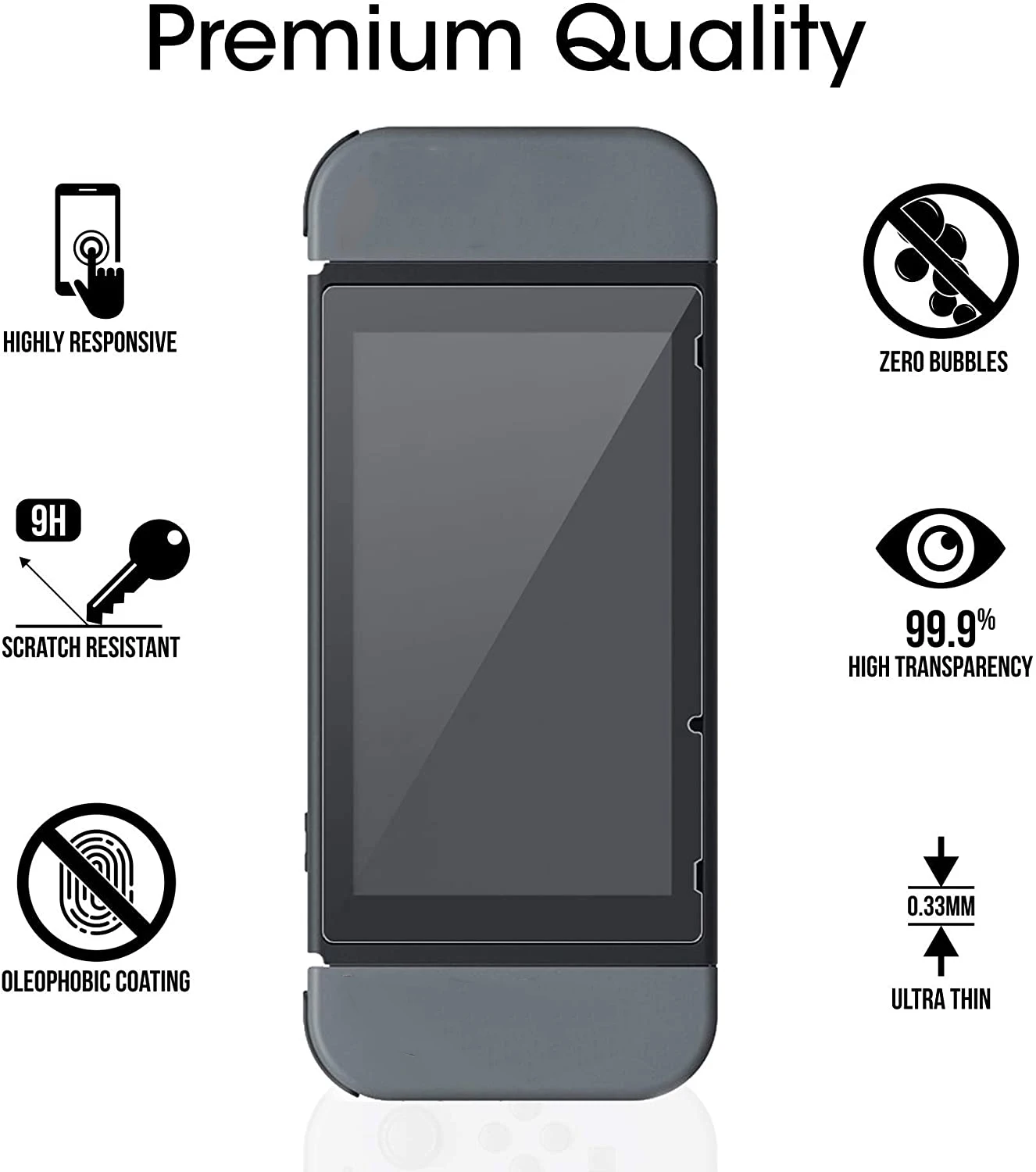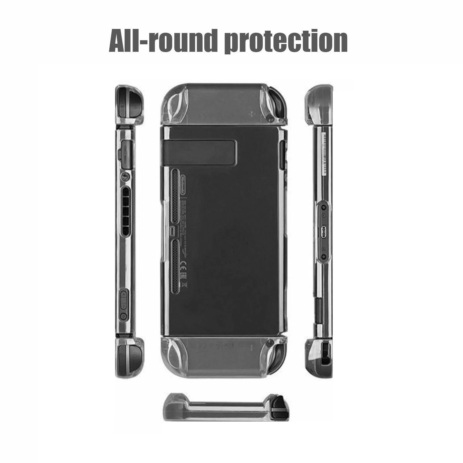 Funda trasera transparente para Nintendo Switch, funda híbrida suave de TPU a prueba de golpes/protector de pantalla de vidrio templado/tapas de empuñaduras para pulgar