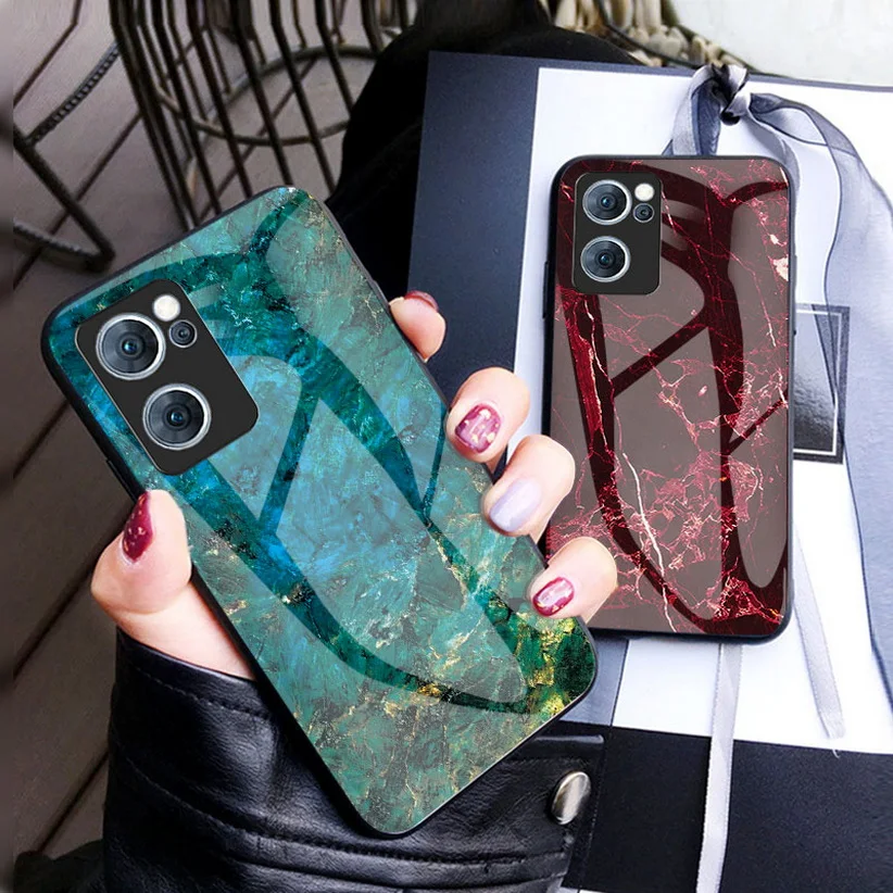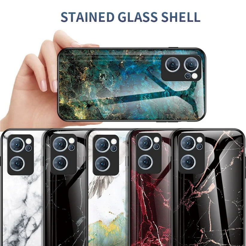 Comprar Funda trasera de vidrio templado para OPPO Find X5 Pro X5 Lite X3 Reno 7 Pro Reno7 6 Pro Reno 5 5z 4 Lite 4Z 5G, funda de teléfono de mármol