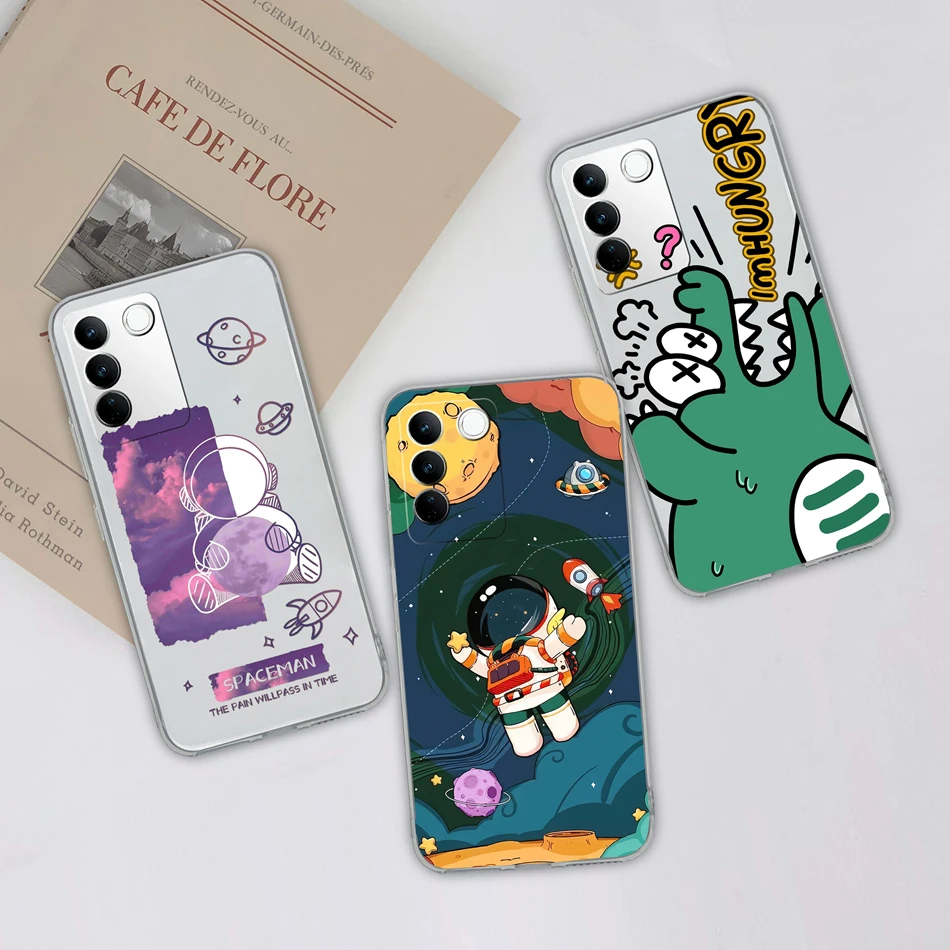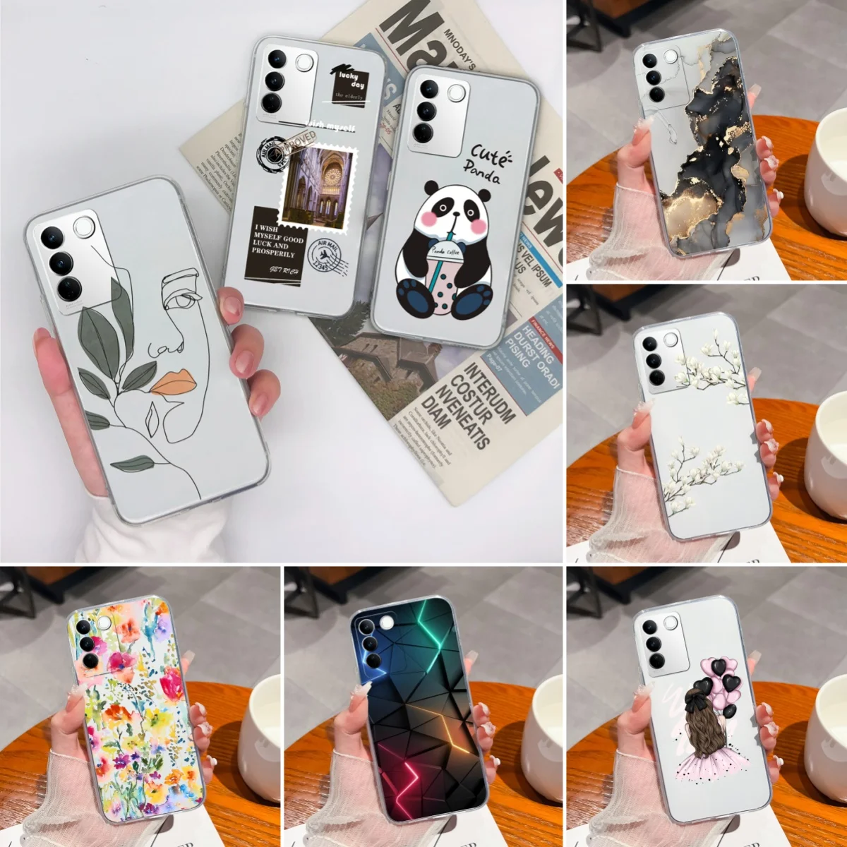 Funda para Vivo V27Pro V27E, funda trasera colorida de silicona suave, carcasa transparente a prueba de golpes para Vivo V27 Pro E, Funda de parachoques Coque