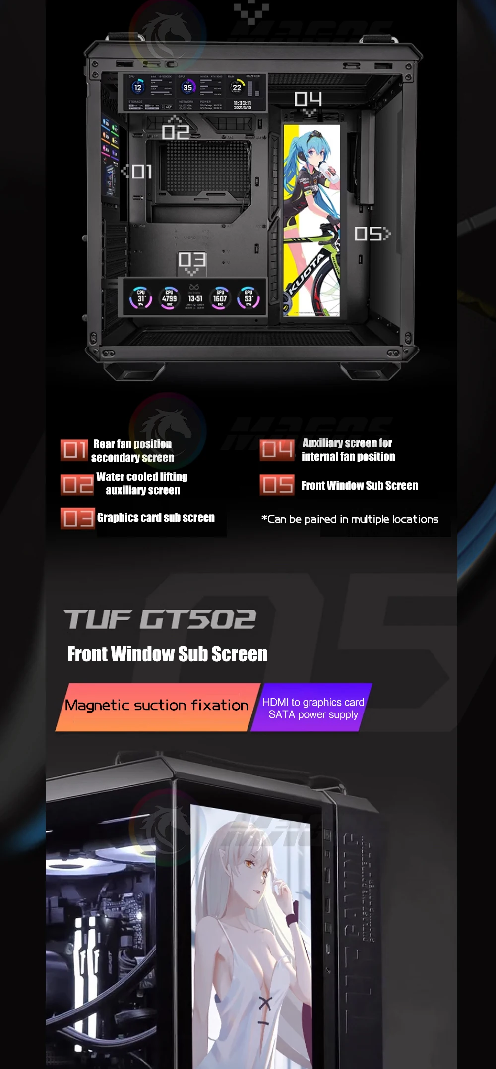 Comprar Funda TUF GT502 para pantalla de Monitor, Panel de solución, tamaño/temas personalizados, AIDA64, Gamer, IPS secundario, ampliar Dsiplay