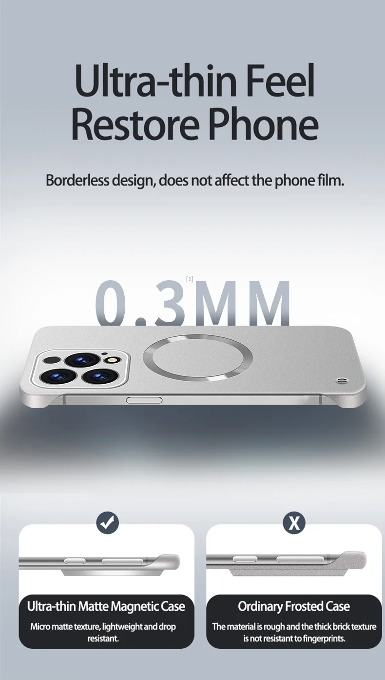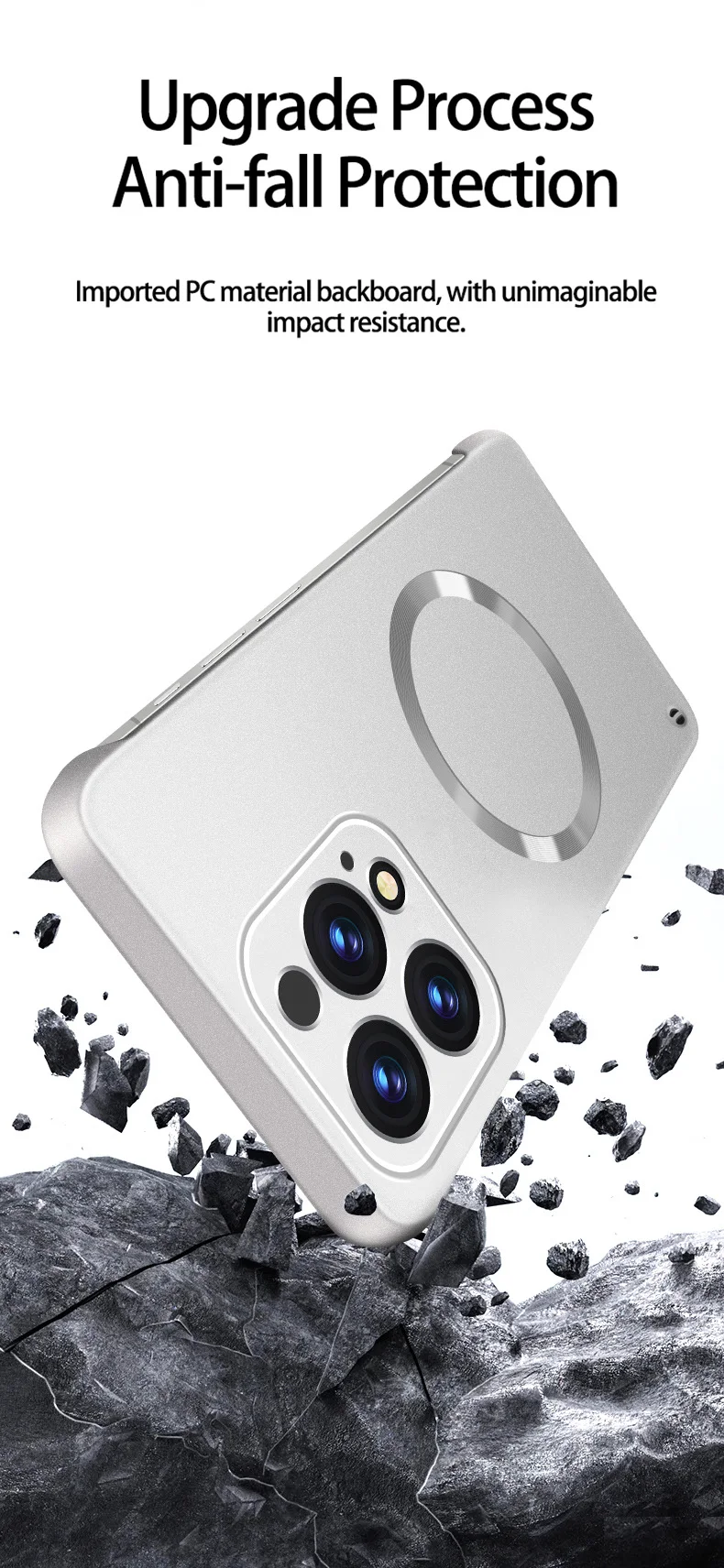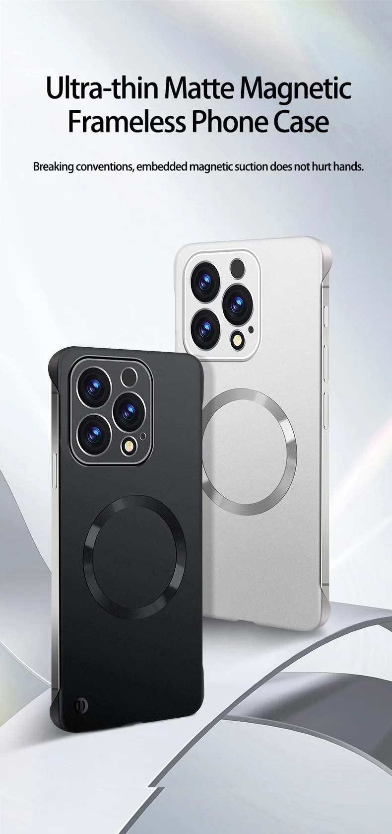 Funda ultrafina y delgada con pintura metálica sin marco para iPhone 16 15 Pro Max 16Pro 15Pro Plus, carcasa dura con carga inalámbrica magnética