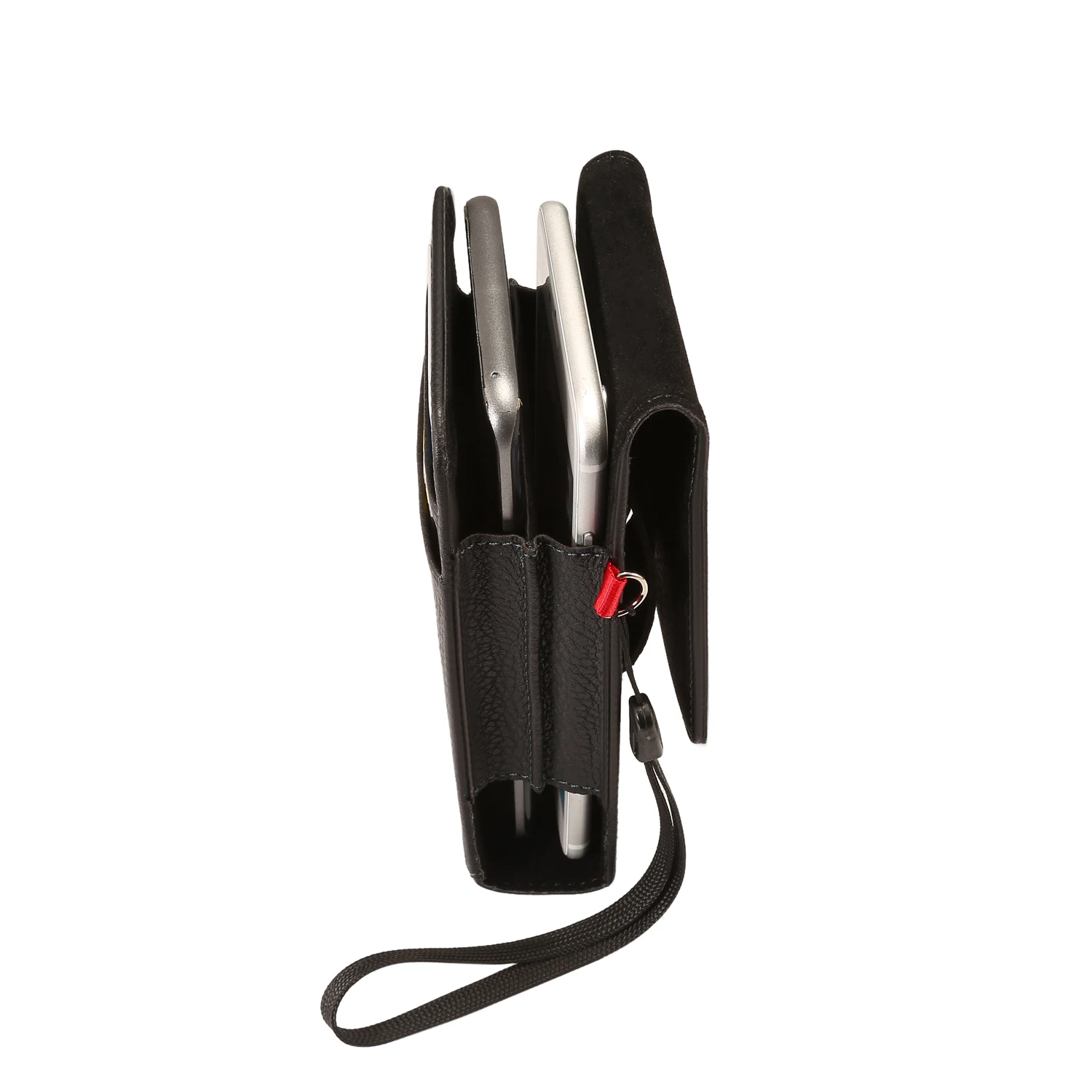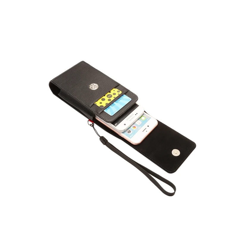 Ranura para tarjeta con patrón de lichi de doble capa vertical hacia arriba y hacia abajo, riñonera universal abierta