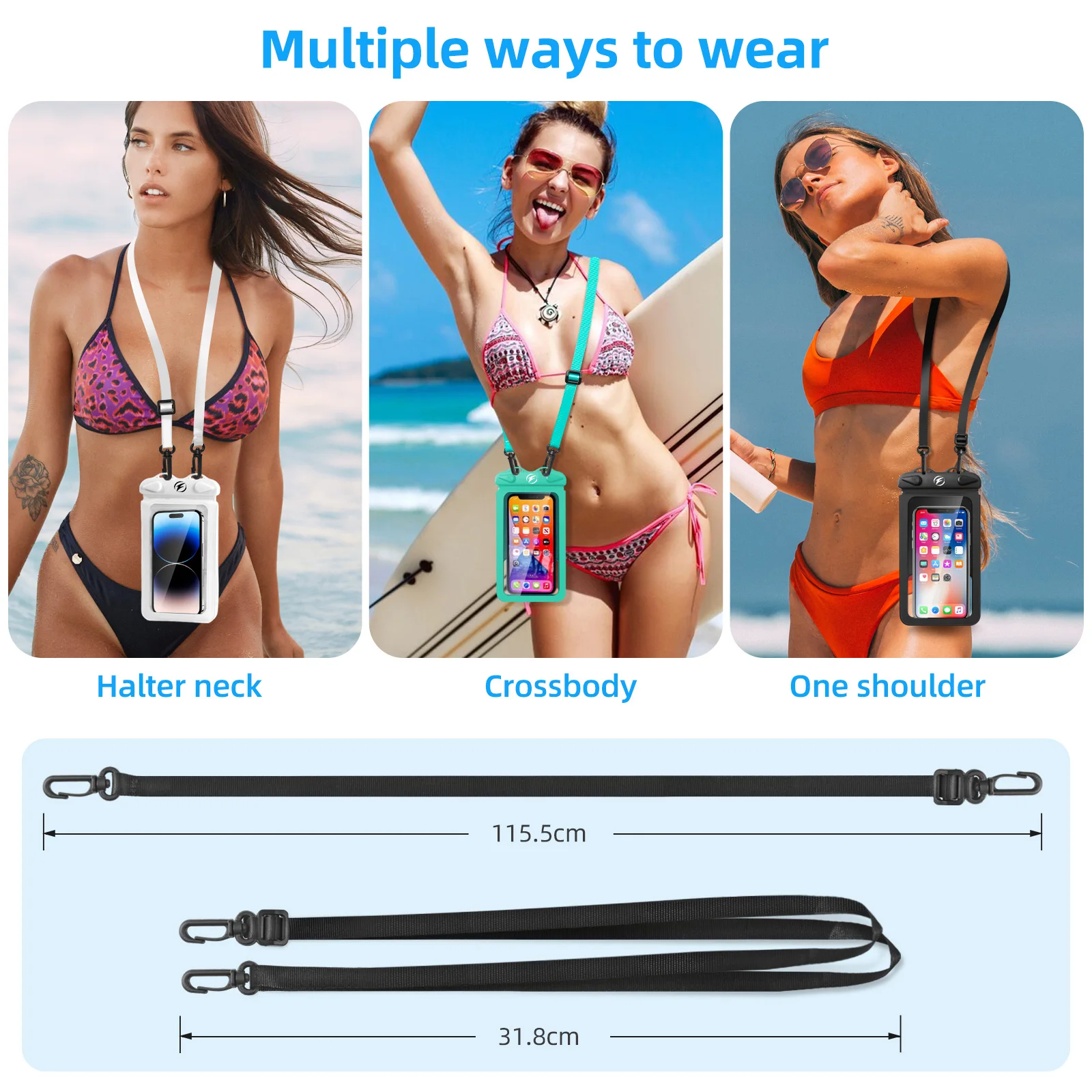 Funda Universal subacuática transparente para teléfono móvil, bolsa seca con pantalla táctil y cordón para el cuello, bolsa impermeable para teléfono para playa, piscina y natación
