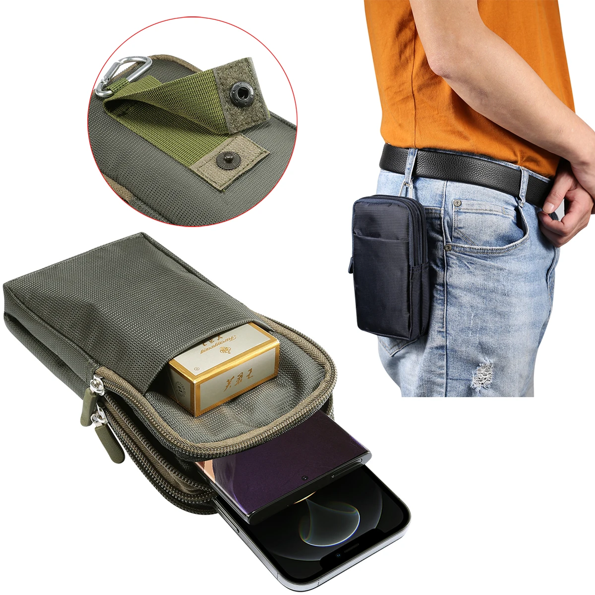 Bolsa universal para teléfono móvil de 6,9 pulgadas, bolsa con cremallera, funda tipo billetera, bolsa con clip para cinturón