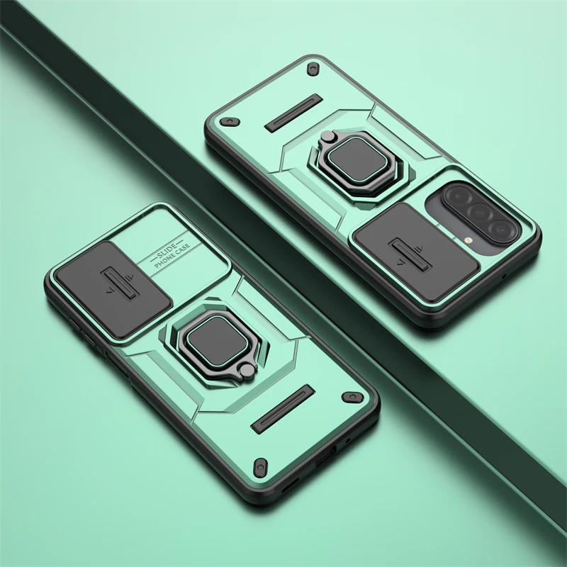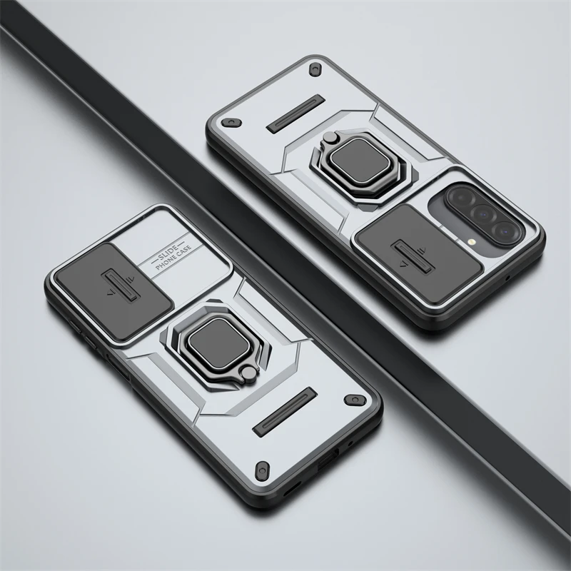 Funda con ventana deslizante de lente para Samsung Galaxy A17, funda Samsung A17, funda protectora magnética con soporte para teléfono a prueba de golpes A17