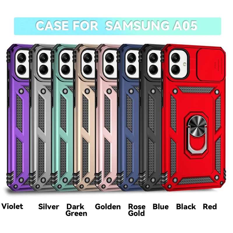 Comprar Funda con ventana de empuje deslizante para Samsung Galaxy A05, funda para Samsung A05 A15 A05S, armadura a prueba de golpes, soporte de Metal, Protector de cámara