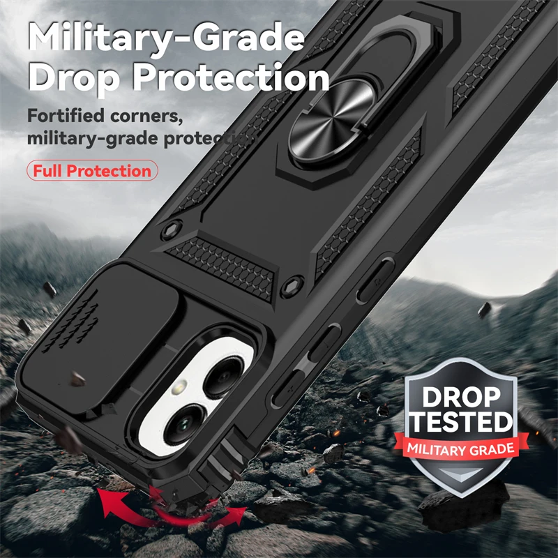 Funda con ventana deslizante para Samsung Galaxy A05, funda para Samsung A05, A15, A05S, armadura a prueba de golpes, soporte de Metal, Protector de cámara