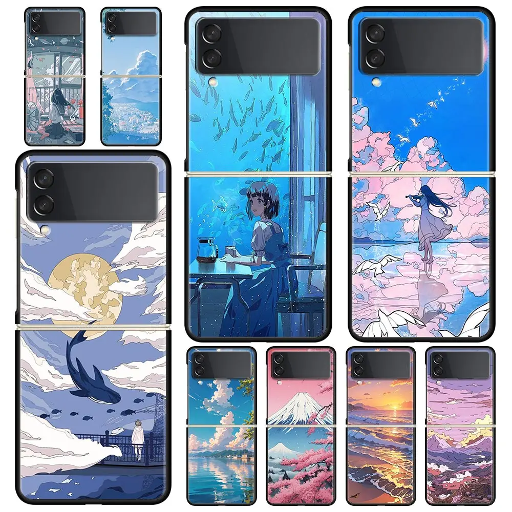 Comprar Funda de verano Sky para Samsung Galaxy Z Flip3 Flip4 Flip5 PC Shell para Z Flip 3 4 5 Black Hard Folding Cover