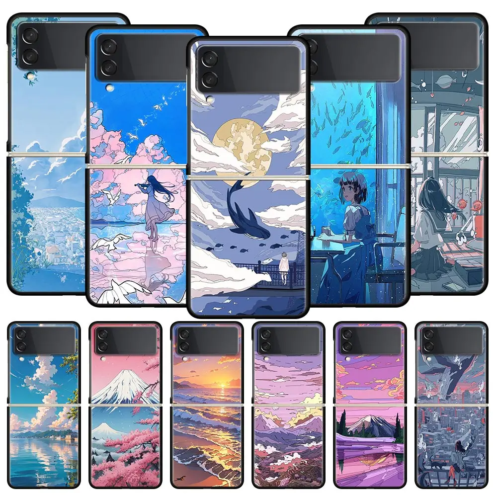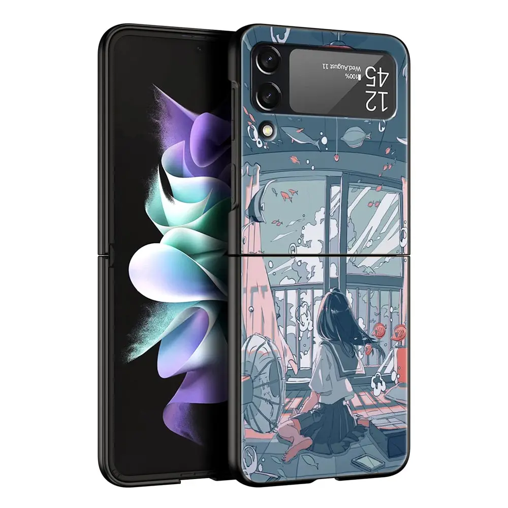 Comprar Funda de verano Sky para Samsung Galaxy Z Flip3 Flip4 Flip5 PC Shell para Z Flip 3 4 5 Black Hard Folding Cover