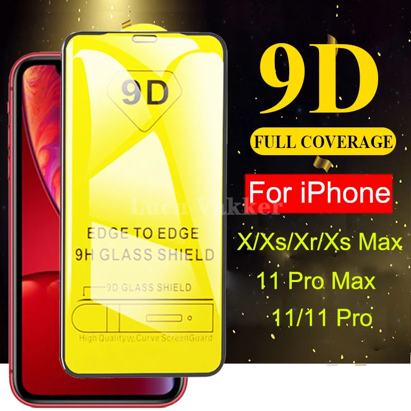 Comprar Funda de vidrio templado para Apple Iphone 11 Pro Max, Protector de pantalla para Iphone X, S, R, Xr, Xs, Max, cubierta completa, cristal de seguridad 9d