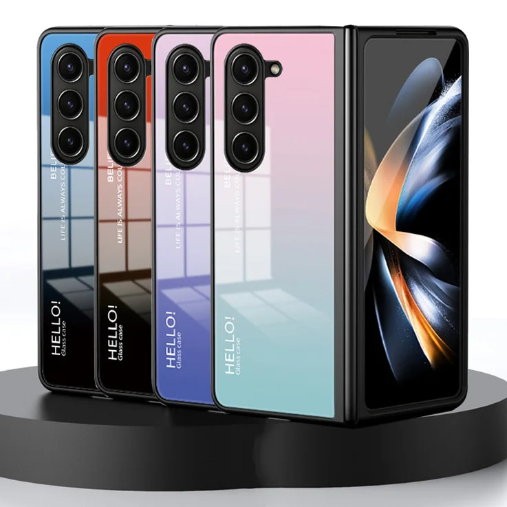 Comprar Funda de vidrio templado degradado para Samsung Z Fold 5 Fold 4 3 Fold5 Galaxy Z Flip 4 3 cubierta trasera brillante