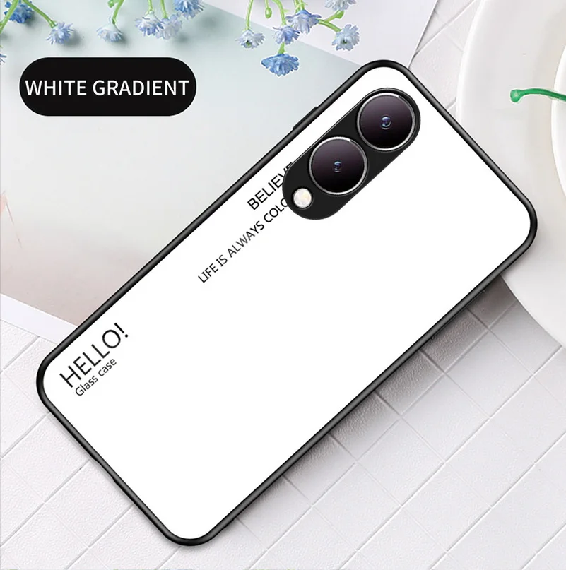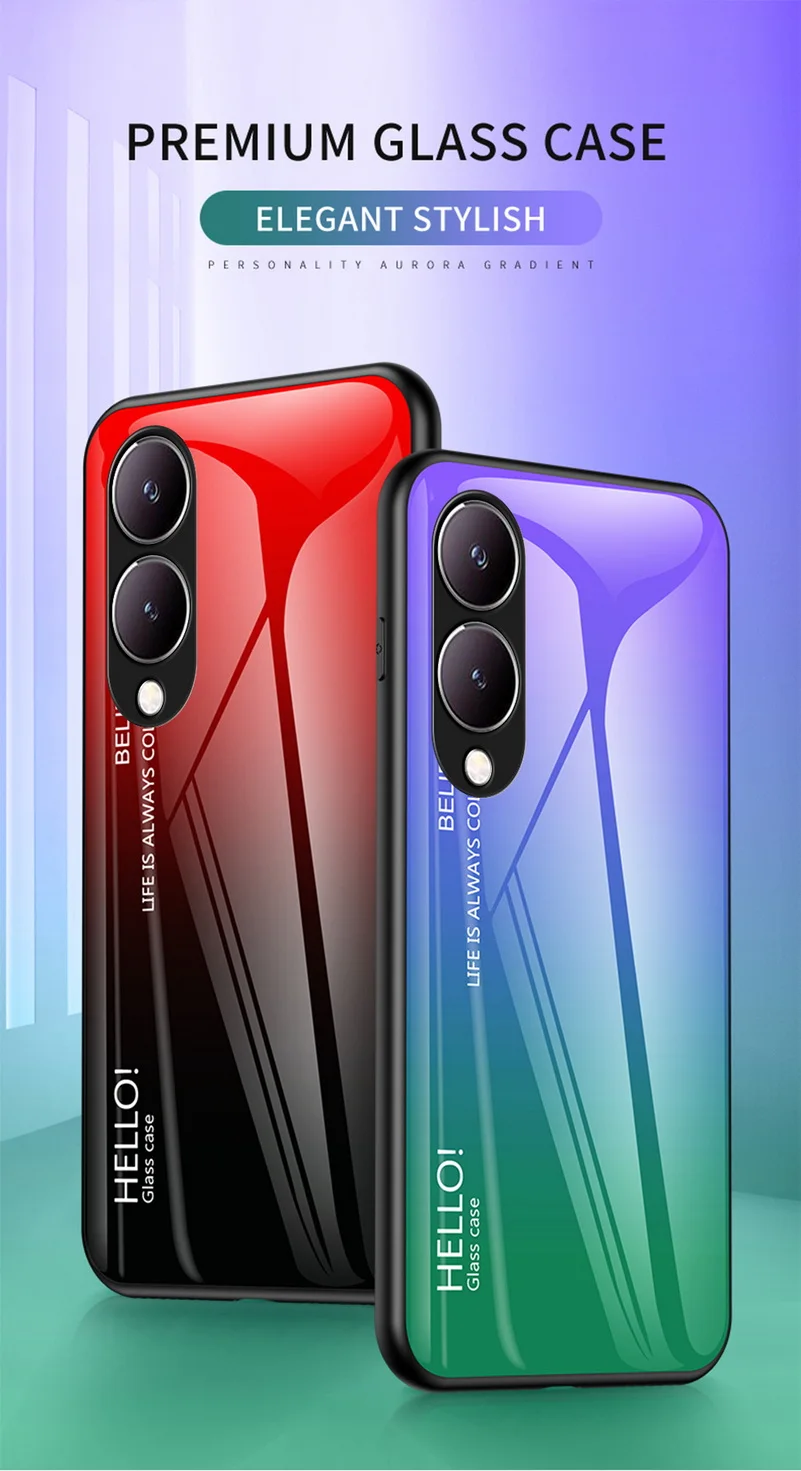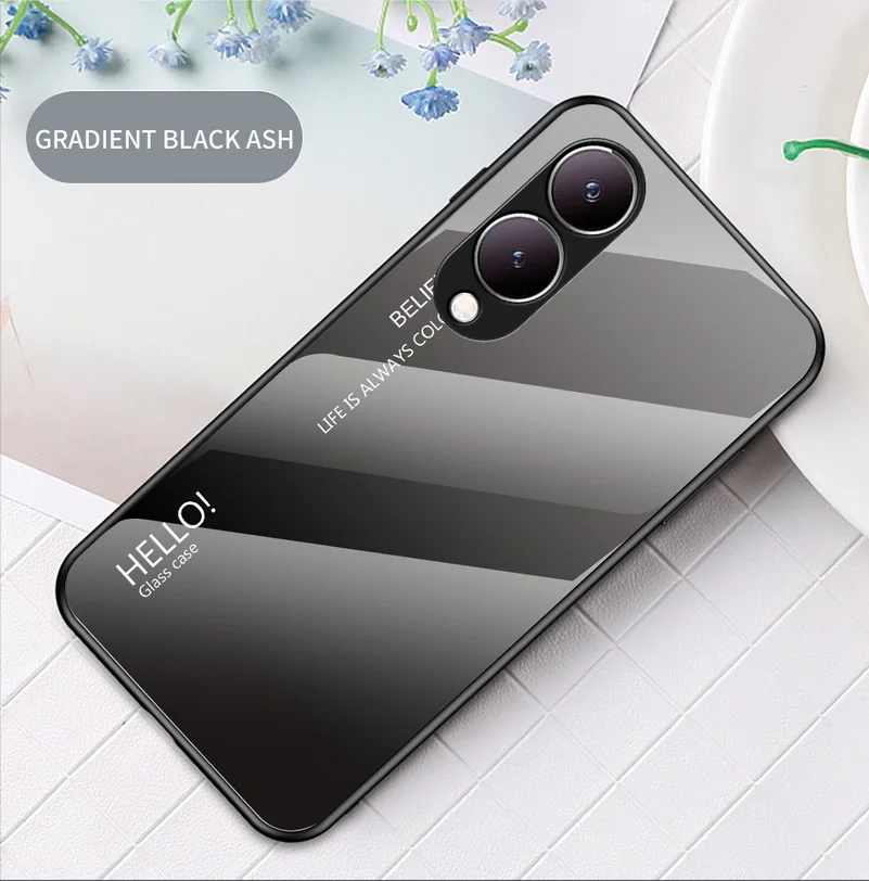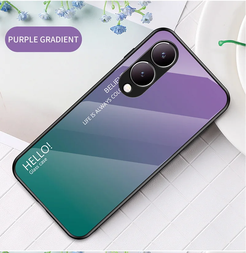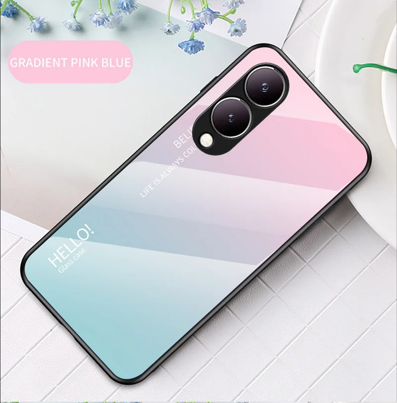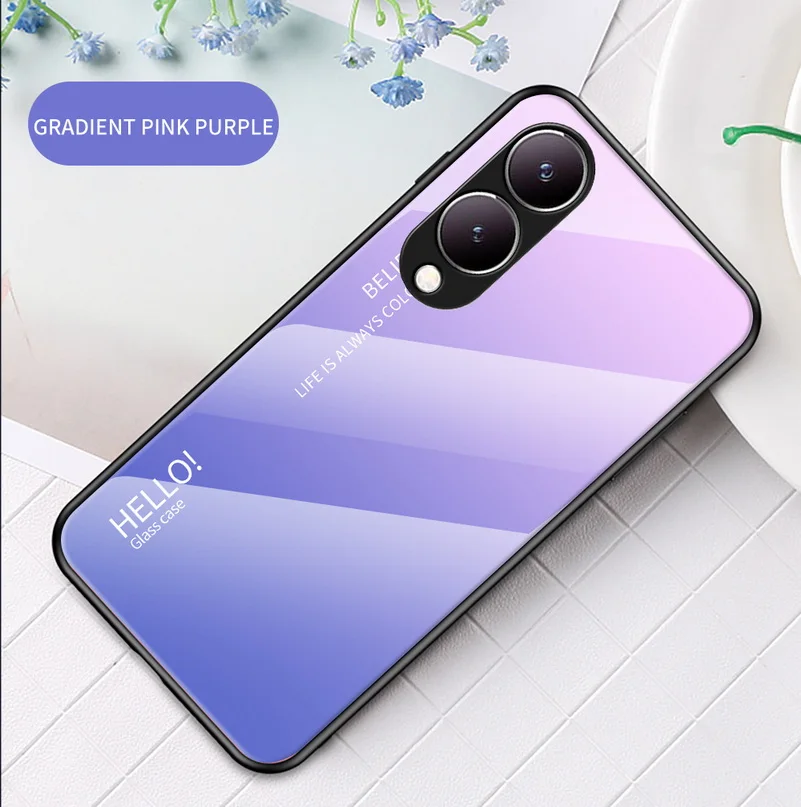 Comprar Funda de vidrio templado degradado para VIVO, cubierta trasera brillante, Y17S, Y36, Y78 +, Y27, Y02, Y22, Y22S, Y35, Y15S, Y02S, Y75, Y21, Y33S, Y51, Y20, Y31