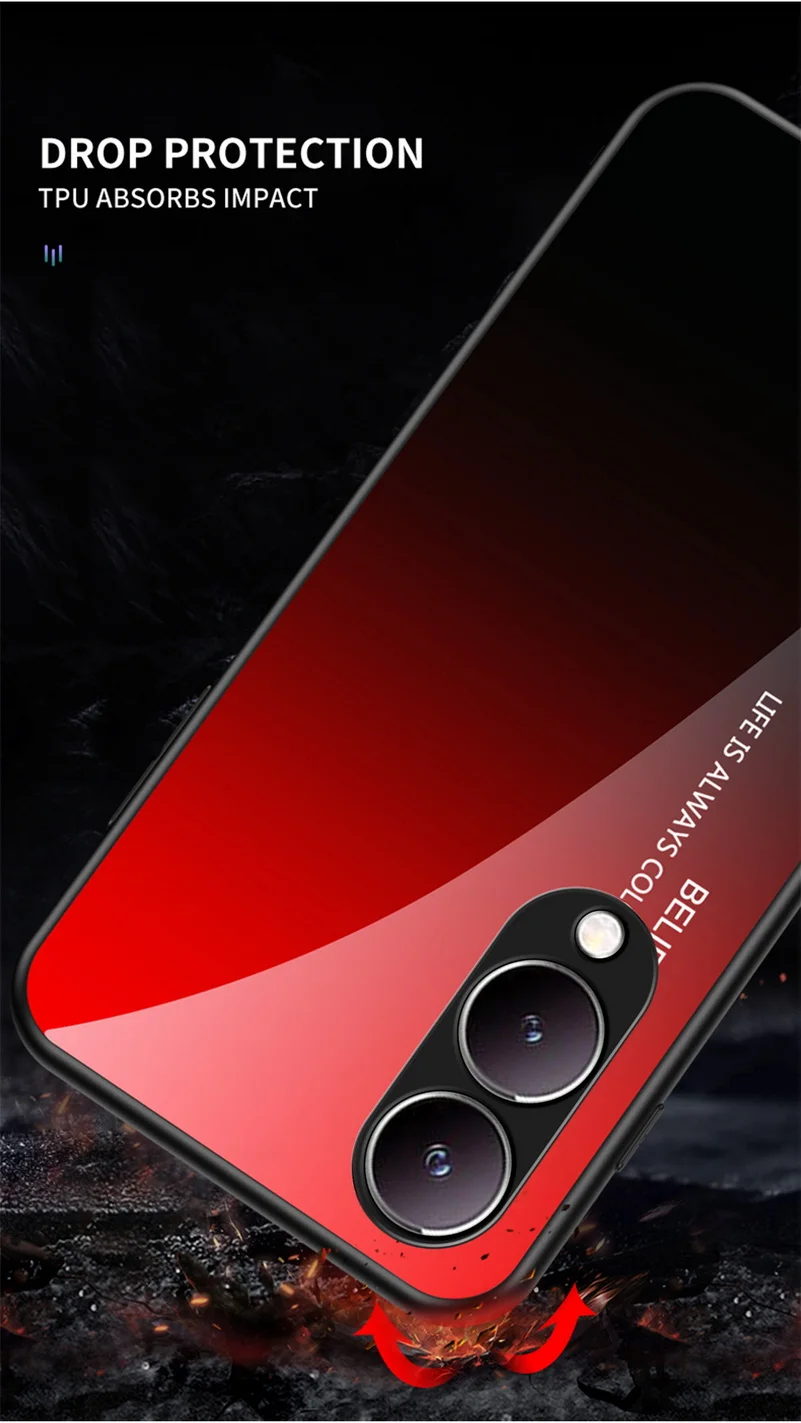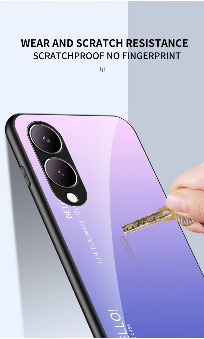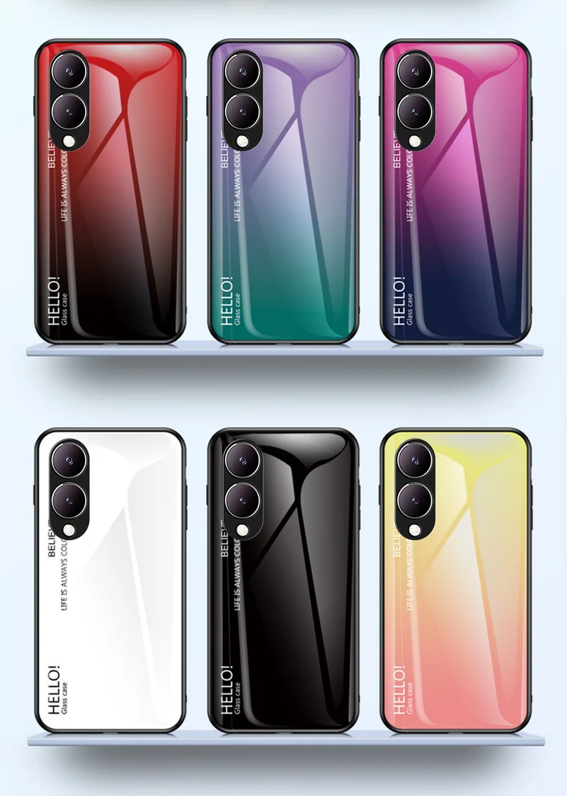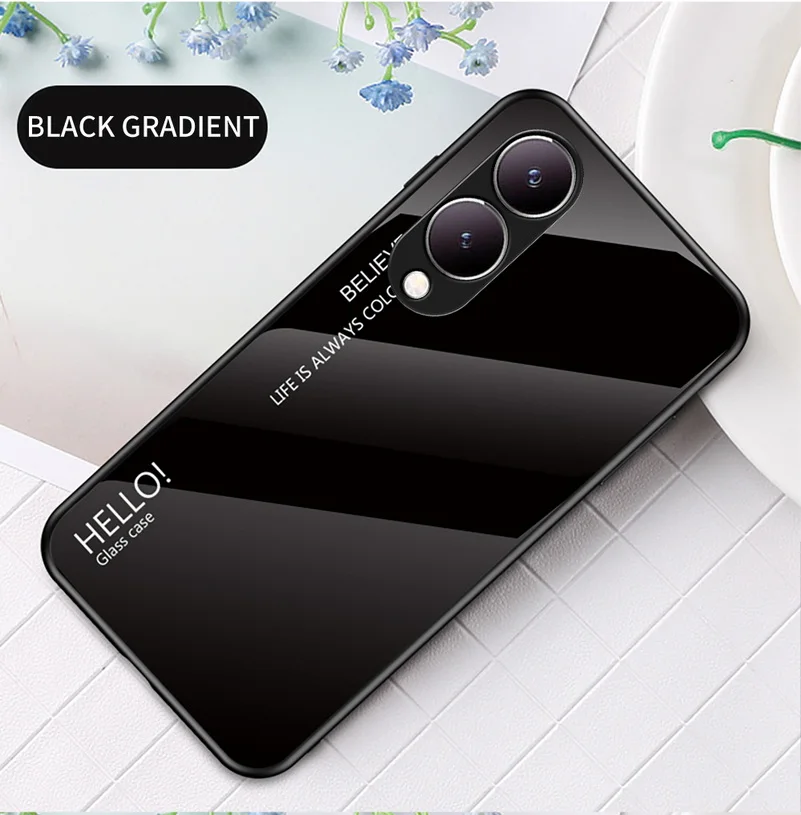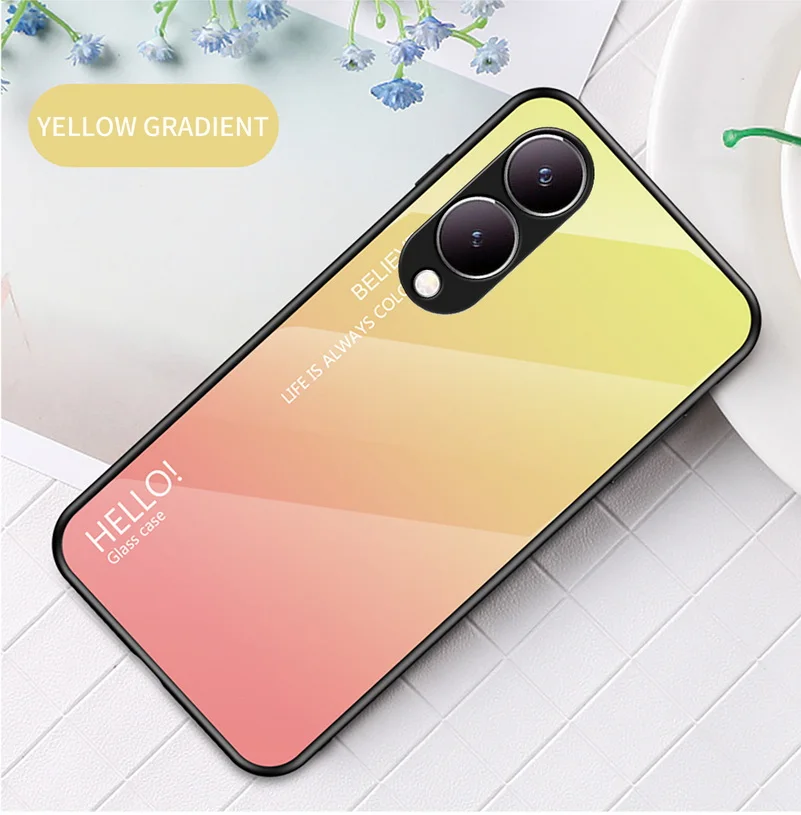 Comprar Funda de vidrio templado degradado para VIVO, cubierta trasera brillante, Y17S, Y36, Y78 +, Y27, Y02, Y22, Y22S, Y35, Y15S, Y02S, Y75, Y21, Y33S, Y51, Y20, Y31