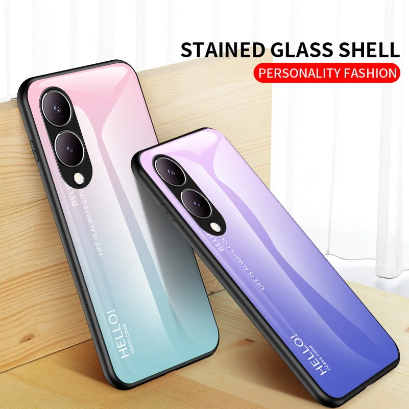 Comprar Funda de vidrio templado degradado para VIVO, cubierta trasera brillante, Y17S, Y36, Y78 +, Y27, Y02, Y22, Y22S, Y35, Y15S, Y02S, Y75, Y21, Y33S, Y51, Y20, Y31