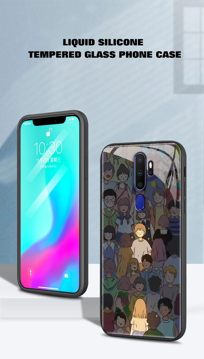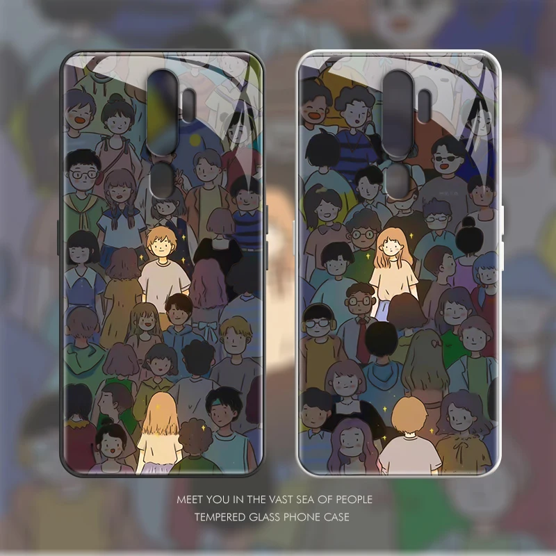 Comprar Funda de vidrio templado para OPPO A11, A11X, A11S, A11K, 4G, lujo, Meet en la gran multitud, a prueba de golpes, funda trasera cuadrada
